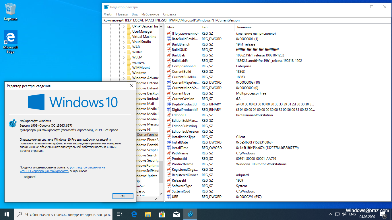 Версия: v1909 Windows 10 (build 18363.657) Профессиональная + Домашняя + Для образовательных учреждений