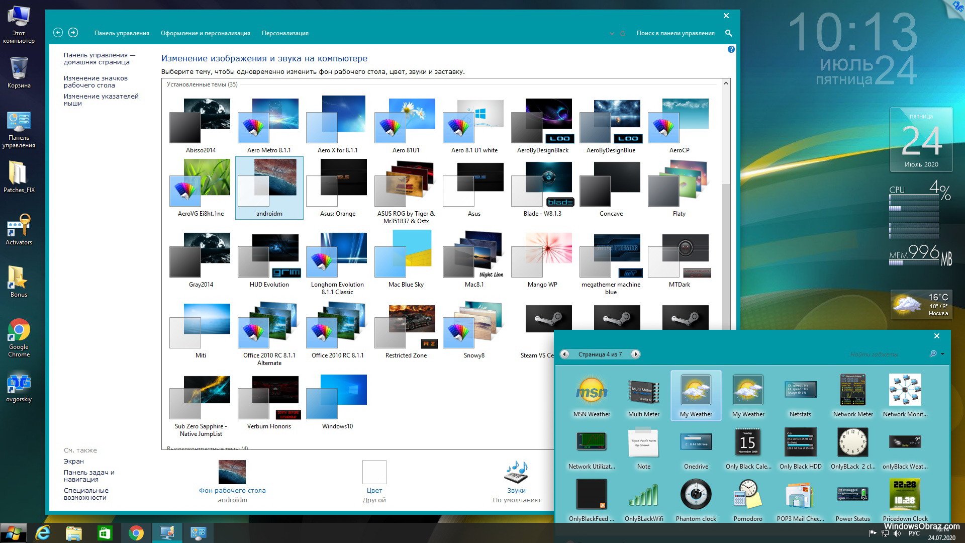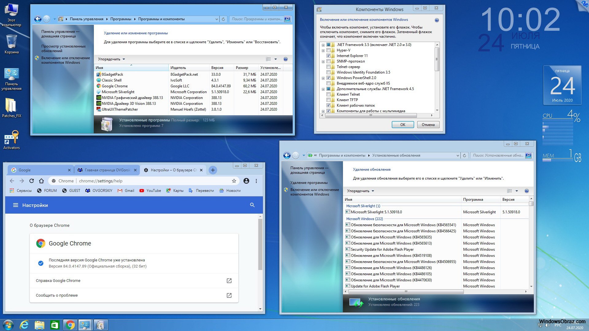 -Автоматически установятся Chrome, Classic Shell, пачка гаджетов и патчер тем UxTheme.