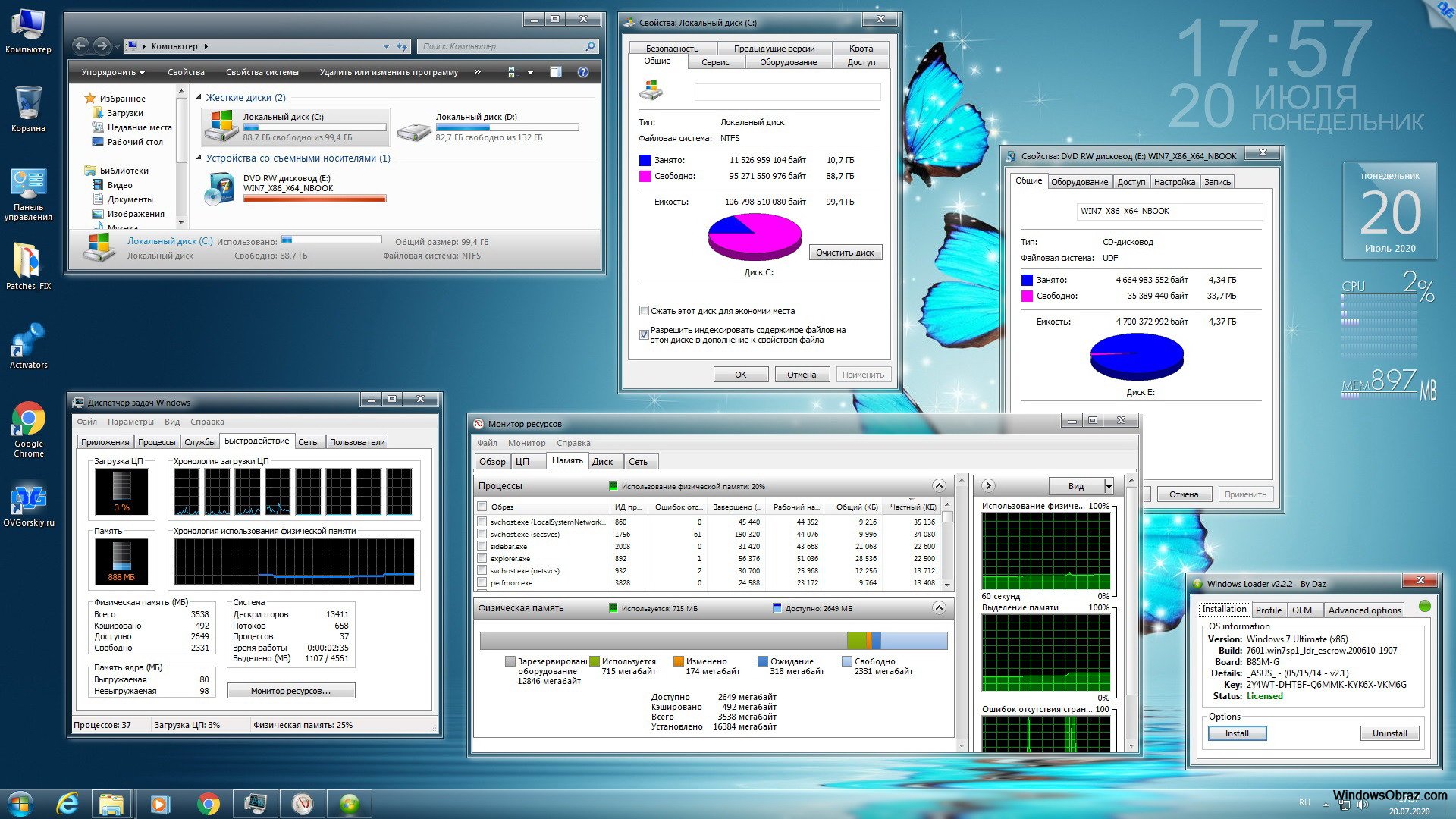 Вышла свежая семёрка Максимальная Windows 7 SP1 2020 скачать 64bit 32bit с активацией 3.9Gb торрент для бесплатной установки операционной системы на нетбук или компьютер.Знаменитый сборщик OVGorskiy собрал и выложил в Интернет обновленную Windows 7, которую прямо сейчас уже качают тысячи пользователей – со всех торрент-порталов. Автор украсил систему лучшими стилями оформления, пополнил ее важными дополнениями, добавил настройки, лекарство и полезный софт. Многие юзеры доверяют качеству систем от этого специалиста – почти на таком же высоком уровне, как доверяют Win 7 SMBB – судя по числу закачек. За долгие годы изучения Виндовс и работы над ней OVGorskiy стал наставником для новоиспеченных сборщиков, ведь он сумел реально улучшить оригинальную систему – по настройкам, красоте оформления и встроенному нужному ПО. OVGorskiy трудится не покладая рук, создавая сборки, которые удобны не только профессионалам, но и чайникам. Некоторые, конечно, завидуют успехам сборок семерки OVG и видят в них только всяческие недостатки. Но мы вам объективно укажем, что 7-ки OVG гораздо лучше его 10-к. И обратите внимание, что предыдущая Win 7 by OVGorskiy находится в положительном рейтинге Win7, а не в отрицательном, как его Win 10 LTSC. Поэтому не нужно думать, что перед вами плохая и низкокачественная сборка, ведь на самом деле это надежная и прекрасная по оформлению система. Не стоит недооценивать профессионализм ее автора, т.к. он пользуется огромнейшим авторитетом и знает Windows 7 до мелочей. Ну а сама система создана по достаточно сложной (но очень надежной технологии) и по своему качеству во многом выигрывает у многих популярных сборок от других специалистов.