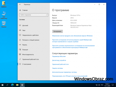 Параметры образа Windows 10 Pro 20H2 64bit без слежки на русском:
