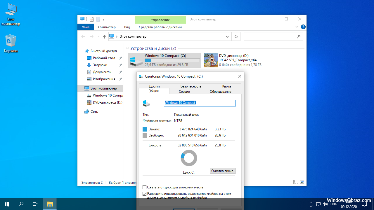 Параметры образа Windows 10 64bit Professional 20H2 Compact 1.79Gb: