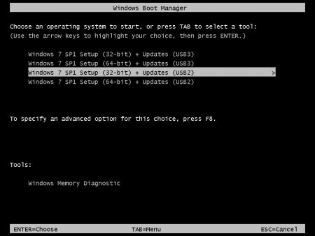 -Будут предложены 4 загрузчика, 2 (х86, х64 – USB 2.0) - от 7-ки и 2 (х86, х64 – USB 3.0) – от 10-ки.