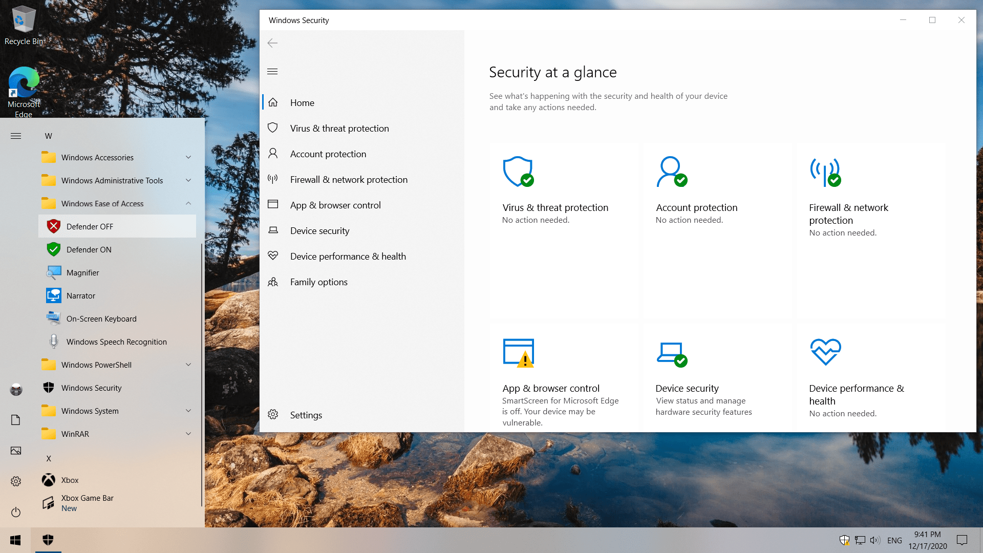 -Изначально Defender отключен. Но не нужно ошибочно считать, что он вырезан, он на месте и легко включается в «Специальных возможностях».