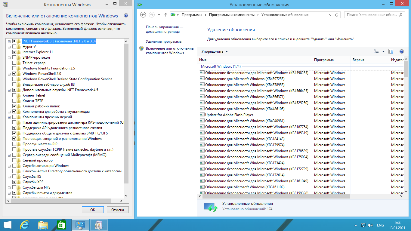 -Наличие .NET фреймворков 3.5 и 4.8. Не все наверно знают, что в Win 8.1 по умолчанию предусмотрен только Framework 4.5, а версия 3.5 отключена. Из-за этого на стандартном оригинале многие игры и софт часто «не идут». Но adguard исправил эту ситуацию, поэтому о добавлении .NET Framework можете даже не беспокоиться. Они есть изначально и включены.