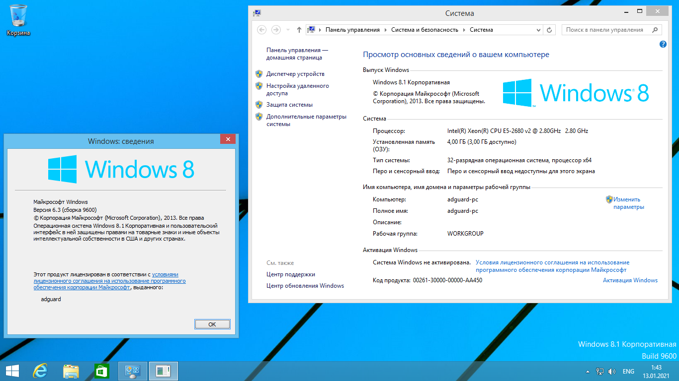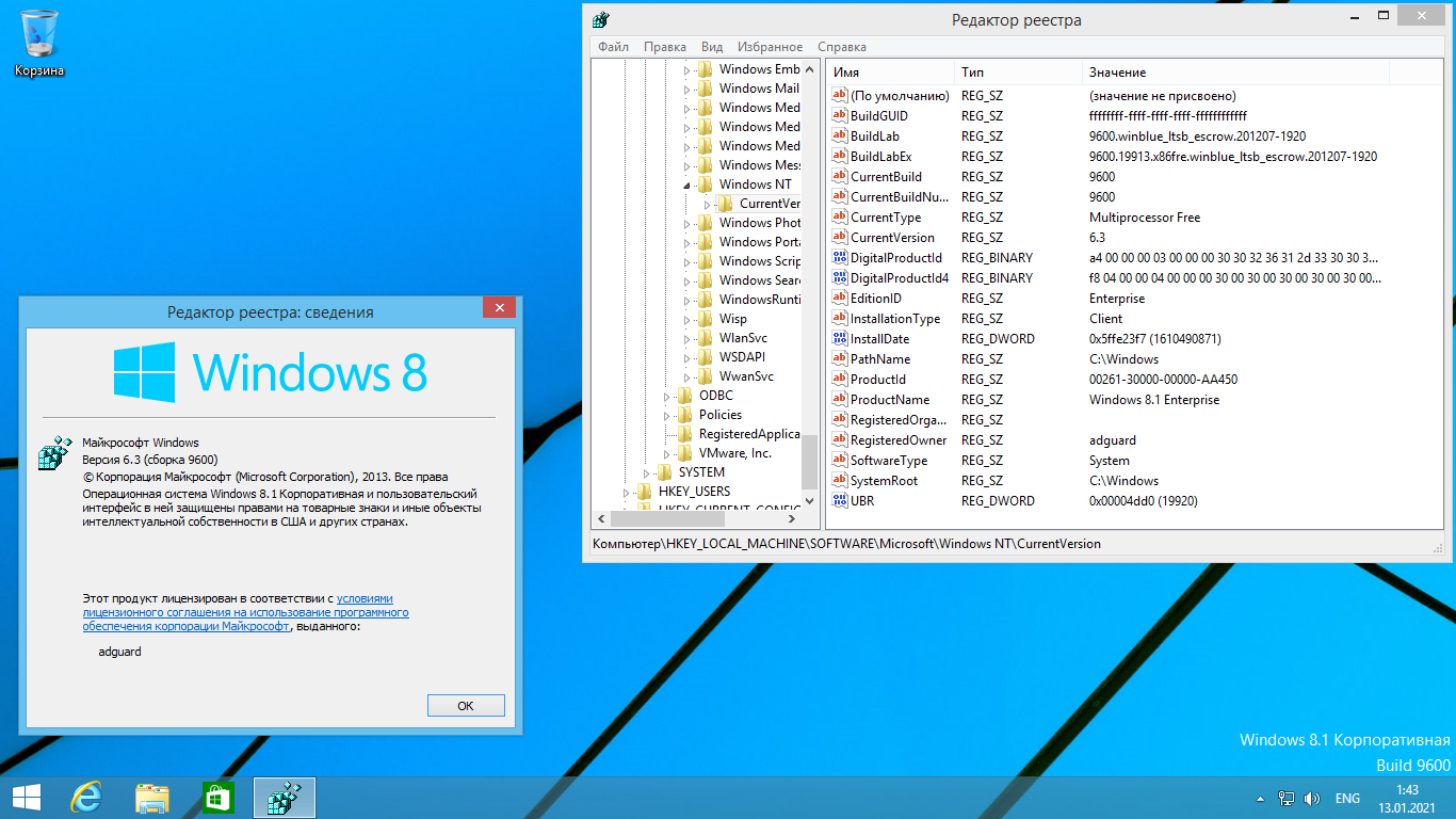 Самая стабильная восьмёрка с последними обновами скачать Windows 8.1 with 64bit 32bit с обновлениями 2021 на русском 6.98Гб торрент бесплатно.Известный сборщик adguard время от времени создает обновленные образы Windows 8.1 (наряду с другими версиями Windows). Данный автор – профессиональный эксперт в области систем Microsoft, его сборки стабильно отличаются безукоризненным качеством. Adguard не использует аудит и является сторонником чистых систем (судя по стандартной конфигурации его сборок). Представленный тут образ Win 8.1 хорош тем, что в нем много редакций в классическом исполнении, включая такие ценные версии, как 8.1 Корпоративная, 8.1 Industry Pro и другие. Также хотим напомнить, что на сегодняшний день Windows 8.1 обеспечена полностью расширенной поддержкой Microsoft, и если ваше железо ее поддерживает, то эта система сможет обеспечить все нужное. В отличие от 10-ки, в ней гораздо меньше различных сомнительных сервисов, в ней проще отключить телеметрию, и она весьма производительна (для бытовых задач) даже на древних двухядерных процессорах. При грамотной настройке Windows 8.1 – примерно такая же легкая в работе, как и знаменитая Windows 7, к тому же обладает прекрасным современным функционалом и высокой надежностью. Геймеры часто хвалят Win 8.1 за отличные показатели FPS и отсутствие чрезмерного хлама, а легкий и быстрый серфинг Интернета замечают и одобряют практически все пользователи этой замечательной системы.
