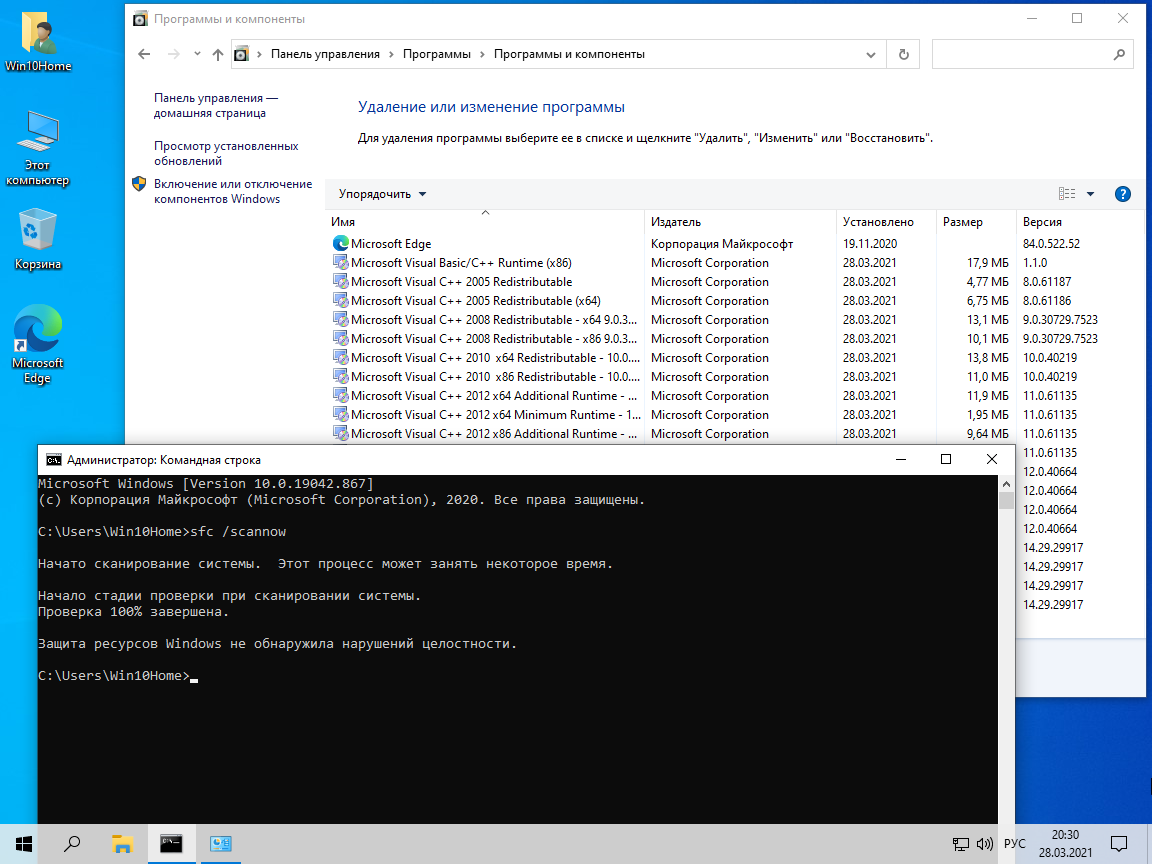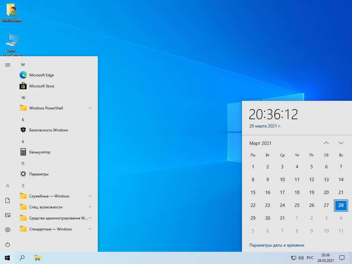 Скриншоты Windows 10 Домашняя 64bit 2021 года