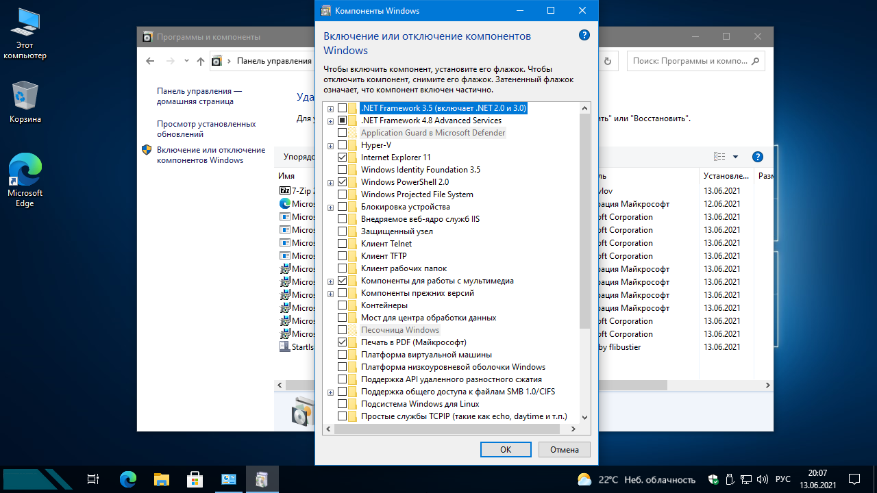 -.NET Framework 3.5. Без него работа с программами будет осуществляться только последним Фреймворком 4.8 (однако, есть редкие программы, к которым такой твик не подходит).