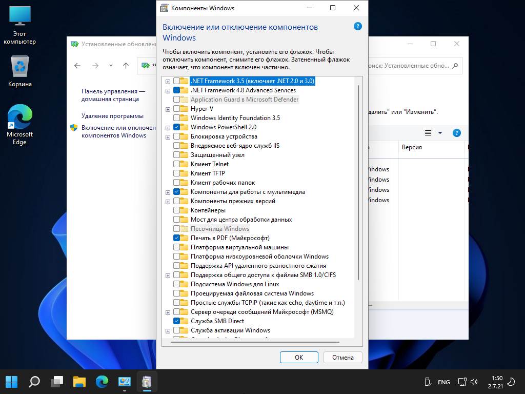 Все системные «Компоненты Windows» на месте – как в оригинальном образе! Сборка без каких-либо сложностей обновляется.