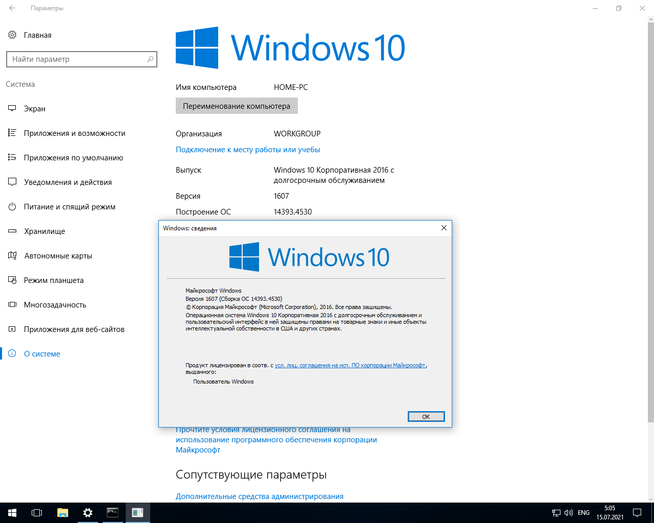 Версия: LTSB 1607 (с долгосрочной поддержкой) Корпоративная (14393.4530)