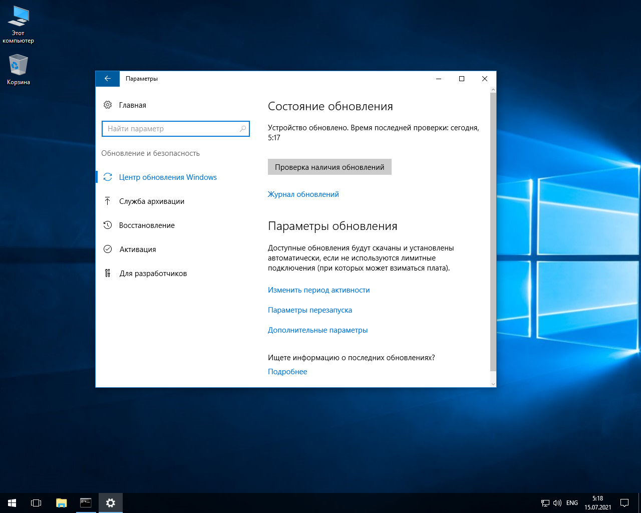 Скриншоты системы Windows 10 2021 года