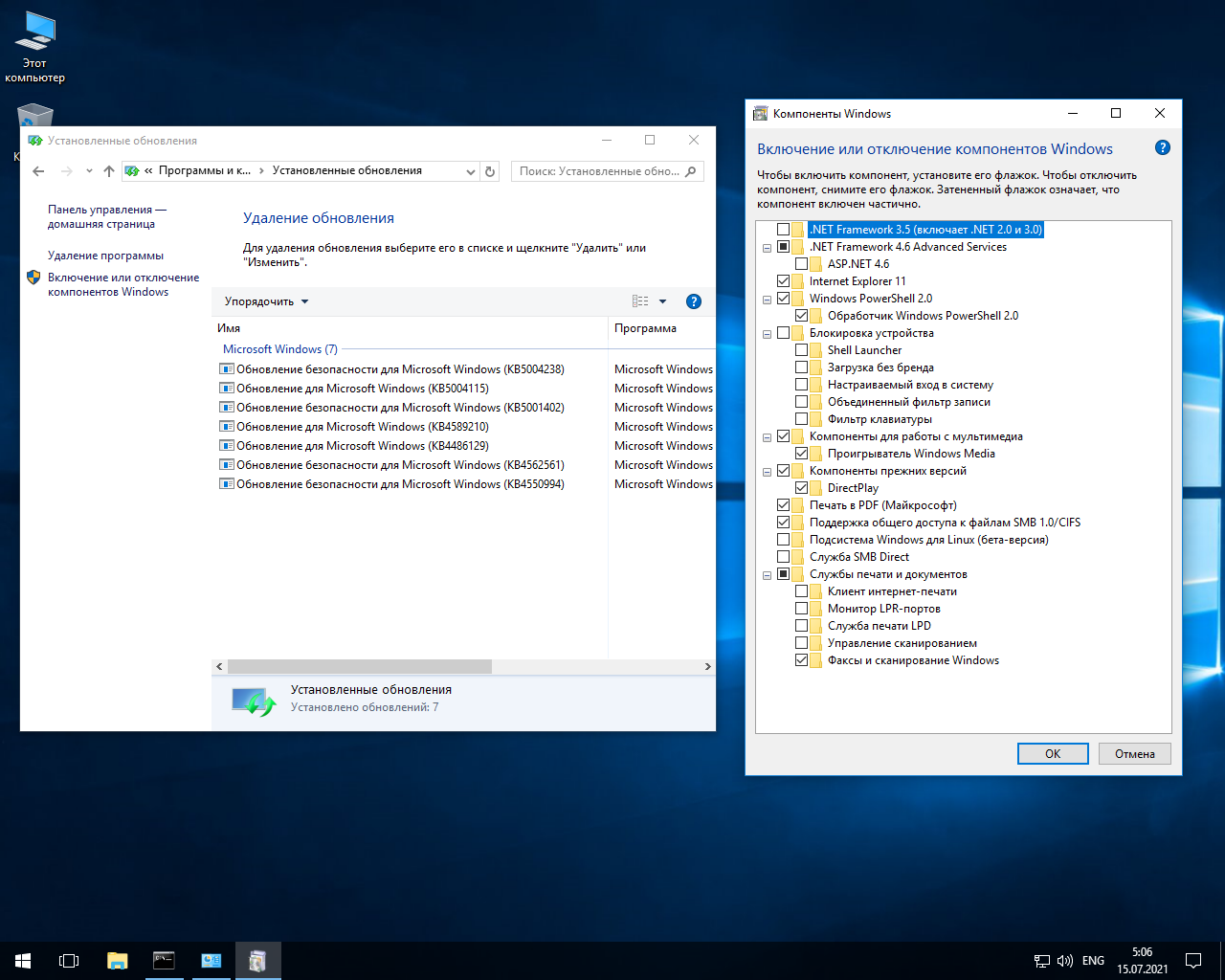 -Включен DirectPlay. Те, кто устанавливают LTSB (ради экономичности) часто рубятся в старые «игрушки», так что DirectPlay для них пригодится.