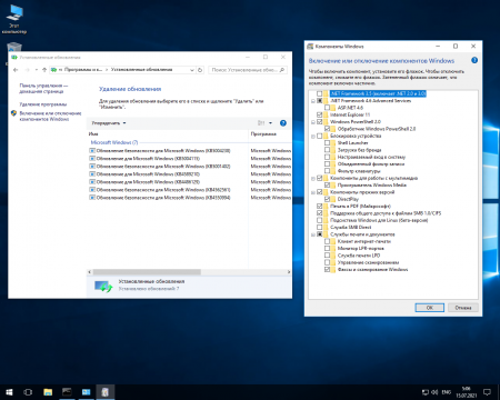 -Вырезаны биометрия-телеметрия, битлокер с Кортаной, Windows_Hello и WinRe/восстановление, нет также Защитника, WinSAT, IME и Input Method. Это все вырезал, естественно, Flibustier из своей сборки, которую мы обновили. Нет также и определенных (не особо важных) Компонентов. Их отсутствие легко можно увидеть на скриншоте Компонентов.