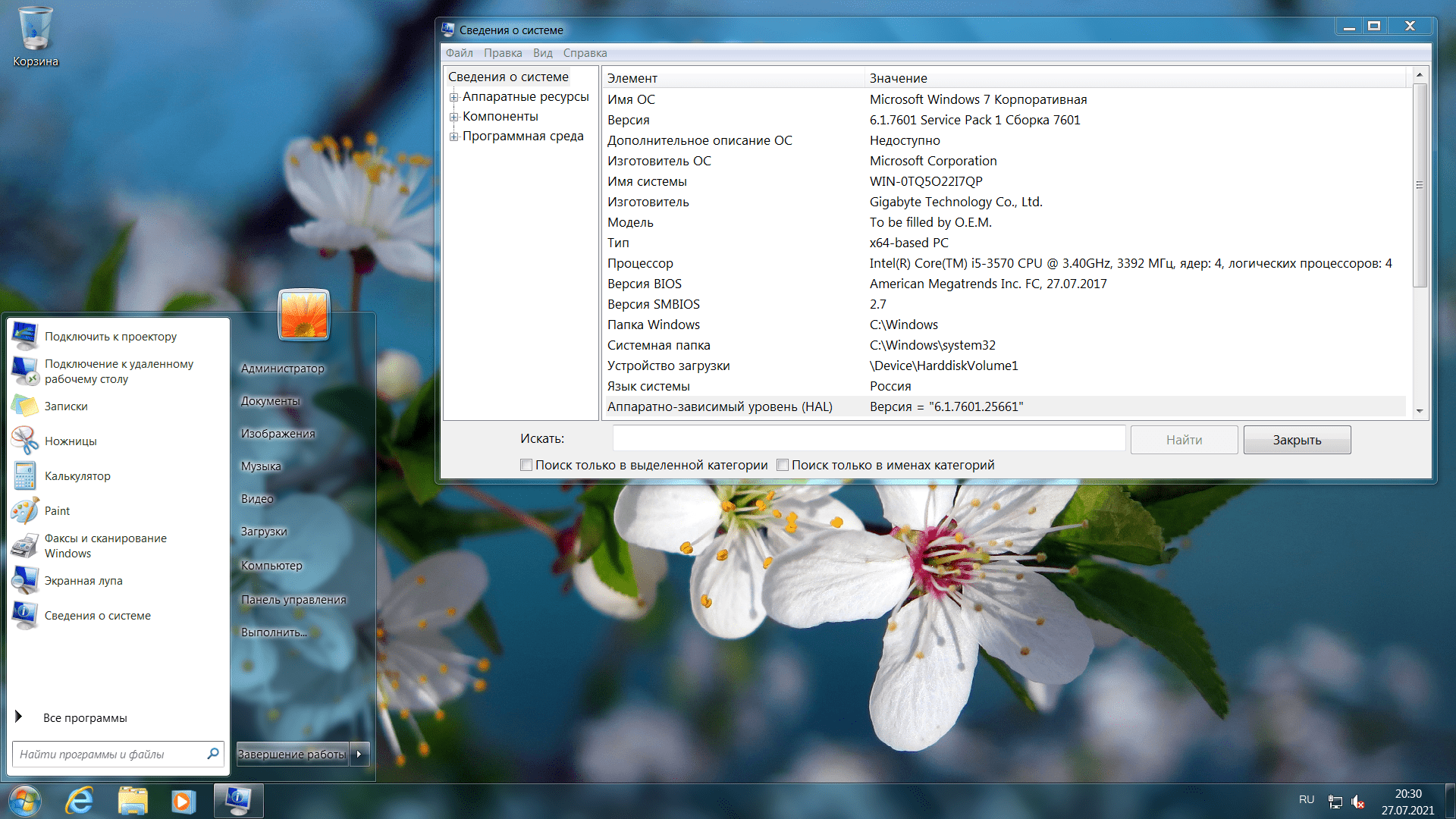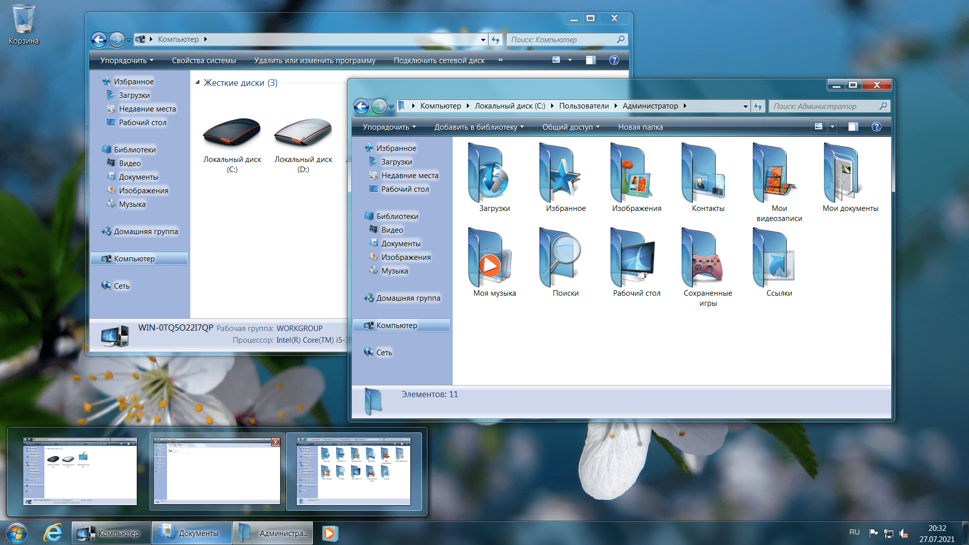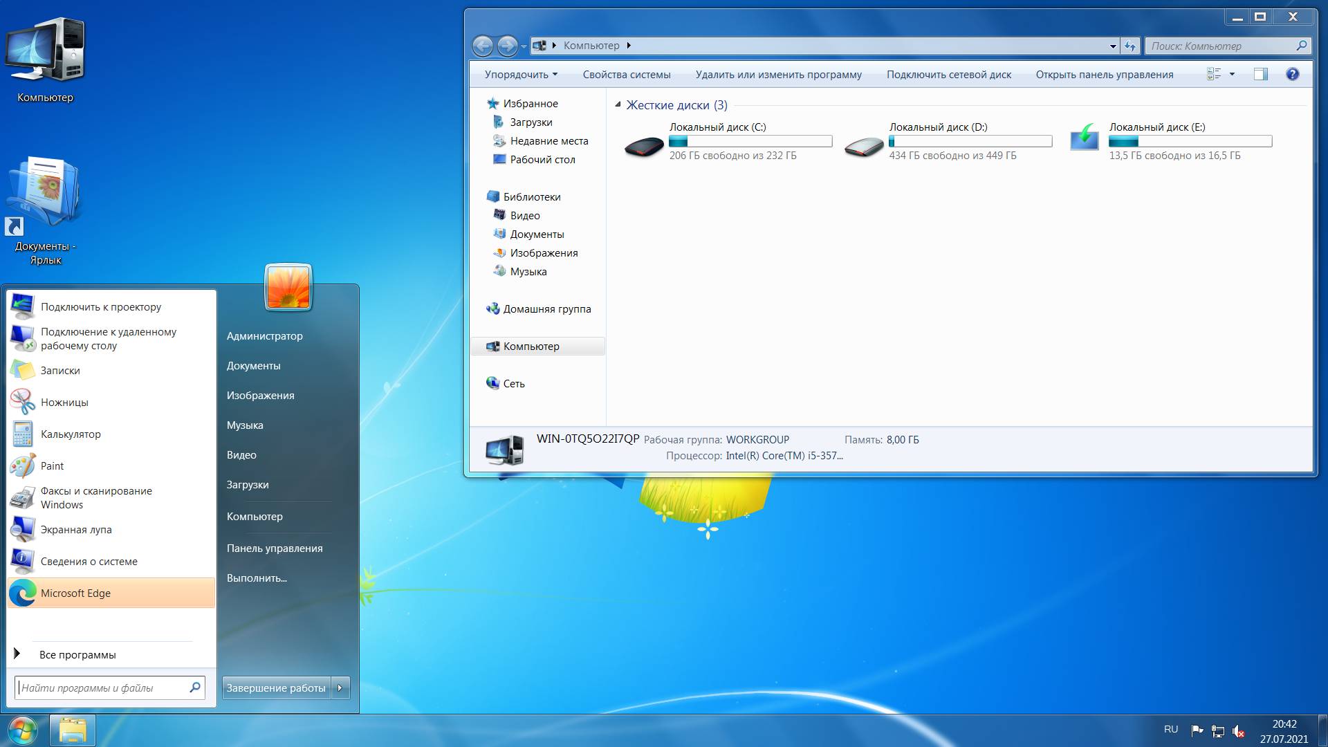 Скриншоты системы Windows7 2021 года
