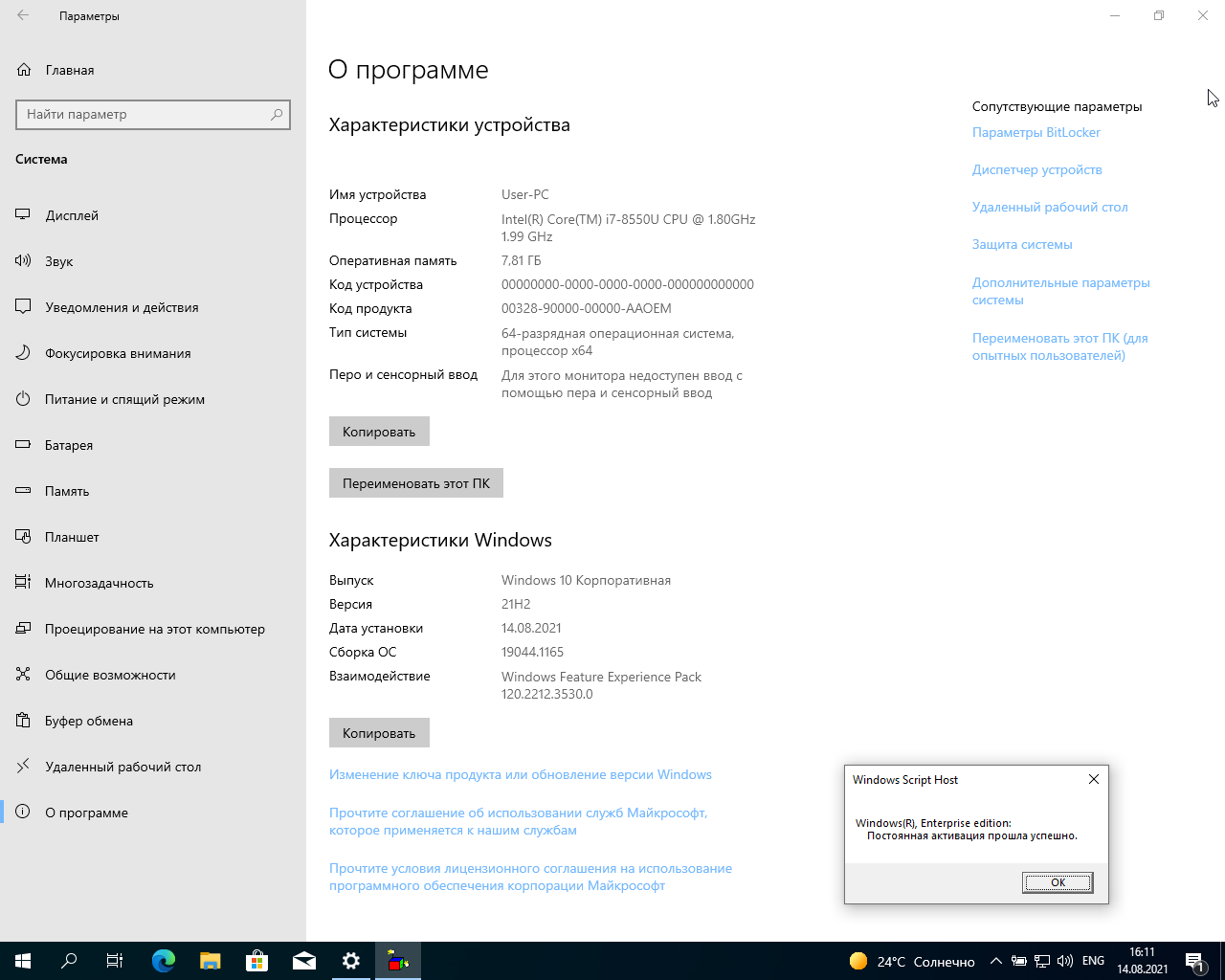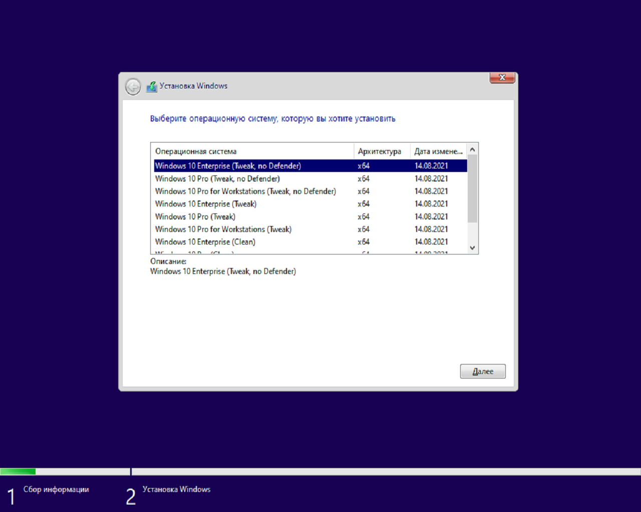 Редакции в сборке (предложены на выбор): Профессиональная, Корпоративная, а также Профессиональная для рабочих станций.