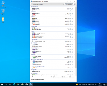 Параметры образа Windows 10 x64 с драйверами и программами WPI 2109: