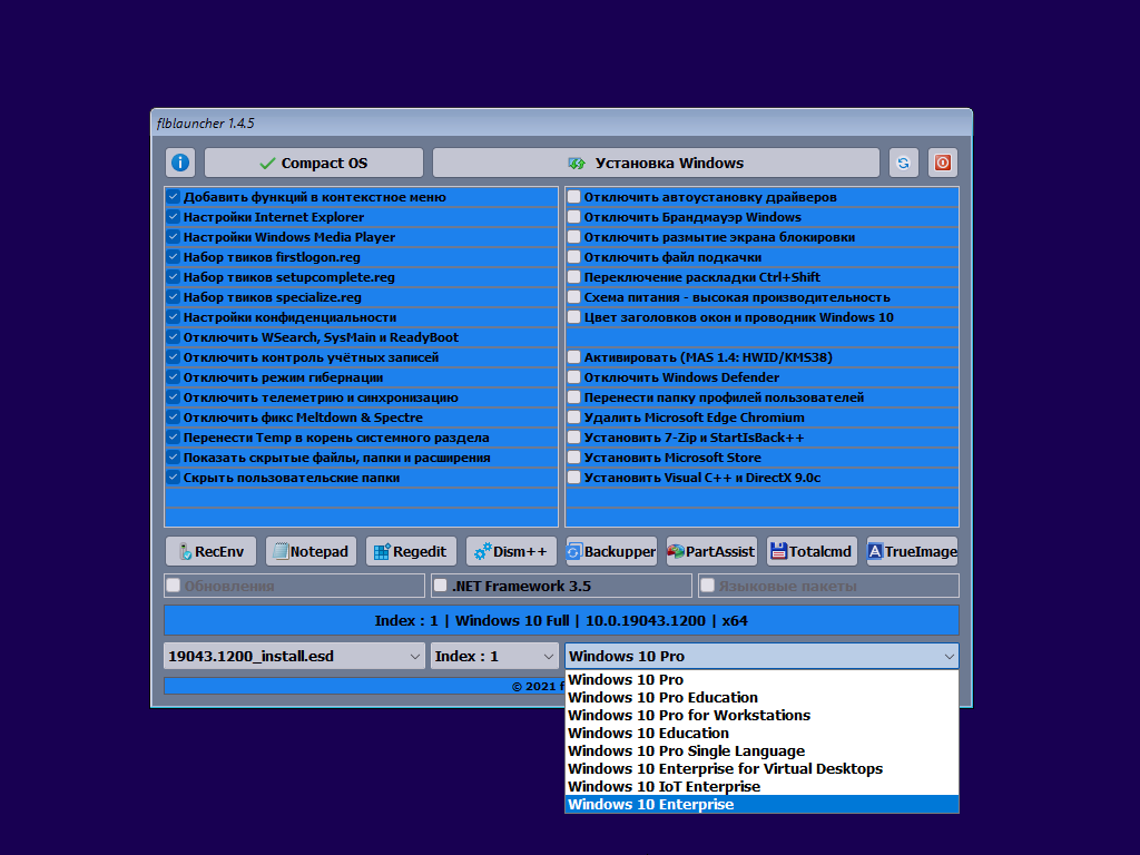 Версия: актуальная Windows 10_Compact+Full (лаунчер 1.4.5, билд - 19043.1200)