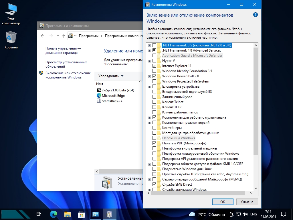 -Отмечать добавление фреймворка 3.5 вовсе не обязательно при установке. Ведь благодаря специальному твику, все программы под Framework 3.5 будут обеспечены поддержкой актуальной 4.8 версией.