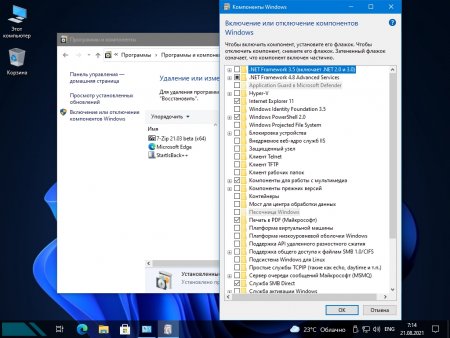-Убраны в сборке XPS, MSRDC, а также Рабочие папки, WCF и Клиент интернет-печати.