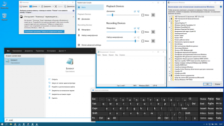 -Дополнительно удаленный хлам: Windows Backup, Центр безопасности (удален в совокупности с Защитником), лишние языки (остались только русский/английский), InsiderHub, Wordpad, IME, графический пароль.