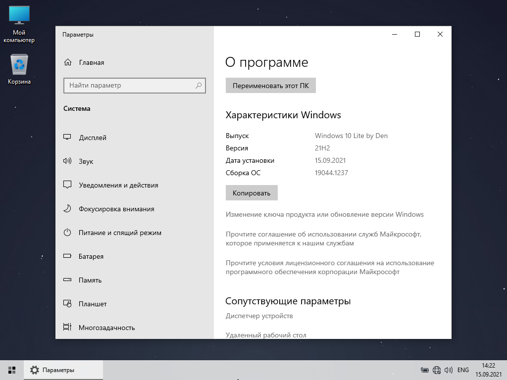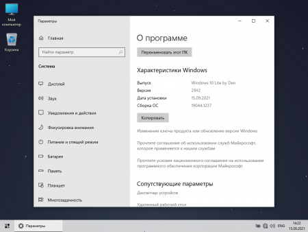 Версия: Win_10 Lite 21H2 (на основе билда 19044.1237) Home