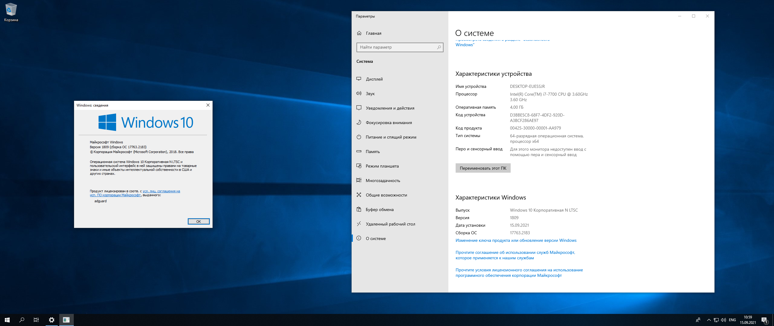 Версия: Корпоративная_LTSC Windows 10 (17763.2183) v1809 с обновлениями