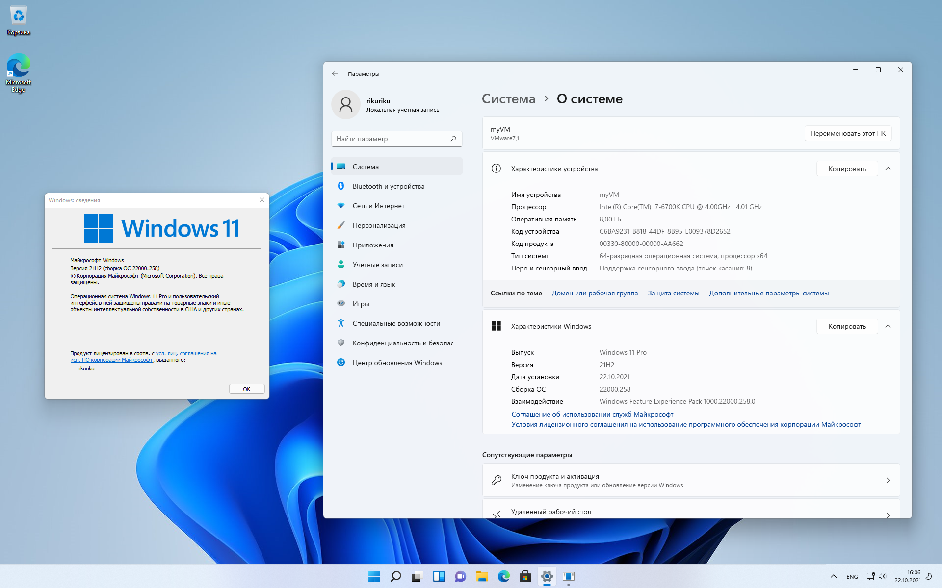 Версия: business-версия Windows 11 (обновленный билд 22000.258) MSDN