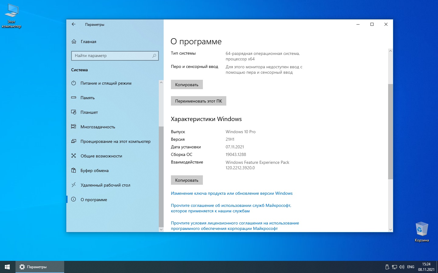Версия: Windows 10 (21H1 - 19043.1288) Профессиональная