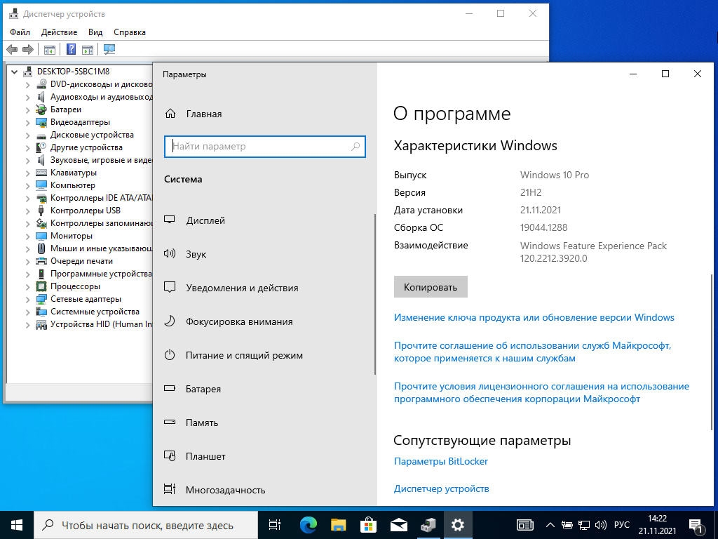 Версия: полнофункциональная Виндовс 10 21H2 - все редакции (19044.1288)