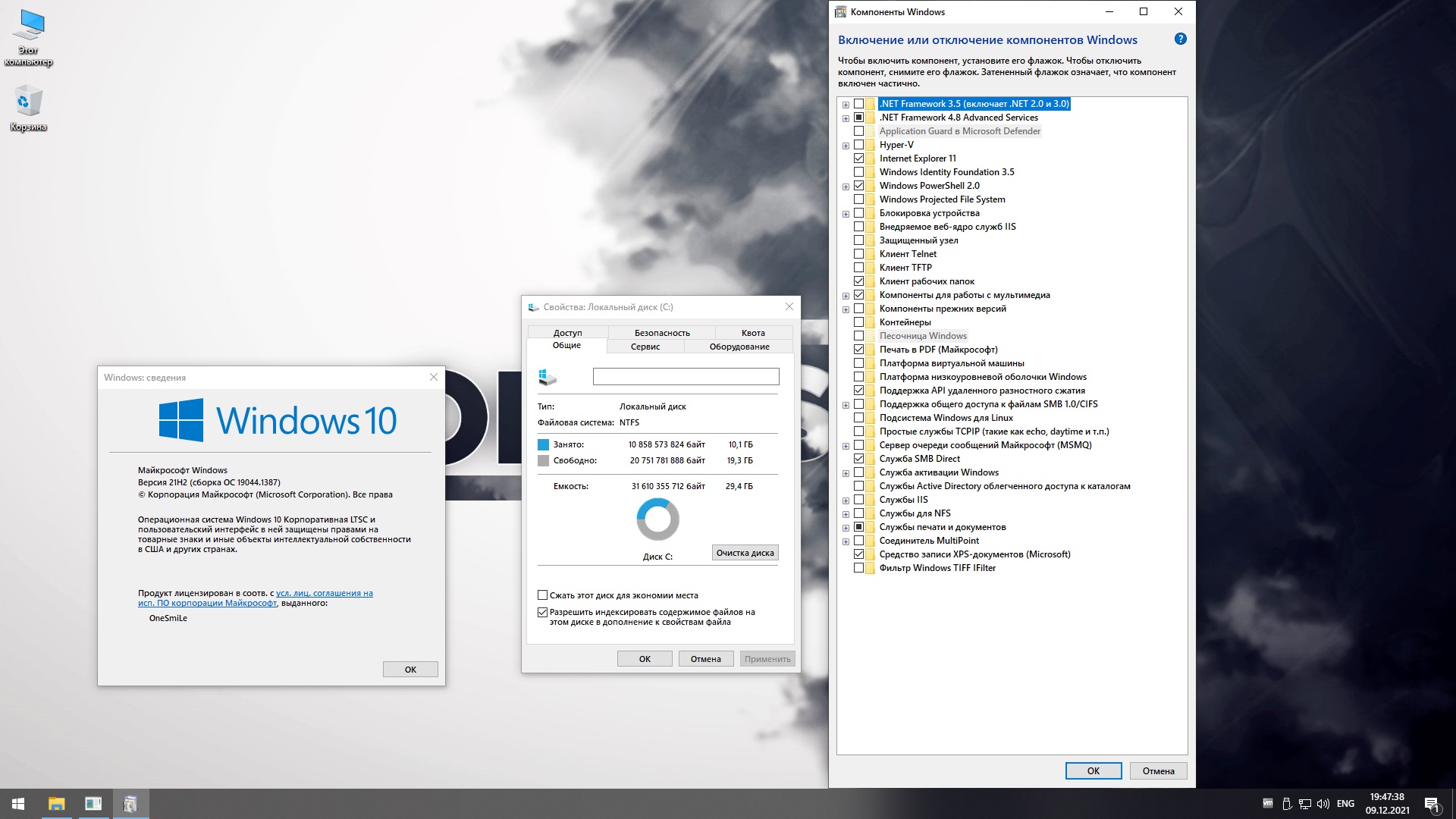 Параметры образа Windows 10 LTSC x64 для игры by OneSmiLe на русском: