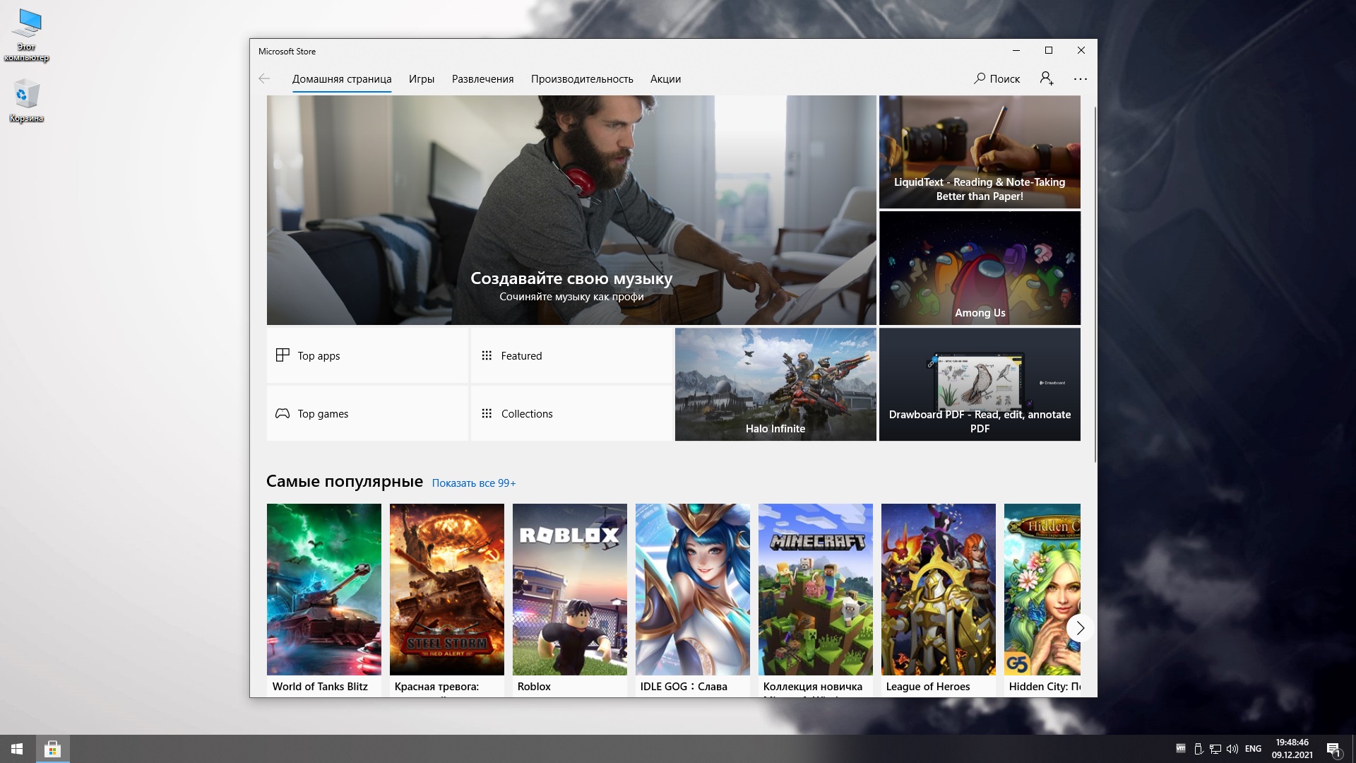 Закачать свежую игровую сборку десятки с активатором и русским интерфейсом, жмите на скачать Windows 10 LTSC x64 для игры by OneSmiLe торрент бесплатно.Почти все популярные сборщики уже успели из новой LTSC 21H2 выпустить собственный вариант системы. OneSmile тоже из нее сделал сборку. Этот специалист очень часто выпускает свои релизы (в основном, с новых/актуальных Windows 11 или 10). Популярность их довольно неплохая в Интернете, поэтому время от времени сборки by OneSmile предлагаются и на windowsobraz.com Новая LTSC 21H2 очень хороша и по качеству, и в плане долгой официальной поддержки. Конфигурация сборки проста, почти не урезана, так что система не должна иметь проблем с обновлениями. В последние свои сборки OneSmile стал добавлять установщик Store, чтоб не возникало лишних вопросов насчет его наличия. Хотя вообще-то Store в оригинальной 21H2 LTSC не предусмотрен, но многим нужен этот компонент. Еще один плюс сборки – включатель/выключатель Защитника. И есть также небольшое изменение интерфейса – в виде замены Segoe UI на его полужирный вариант, но это уже улучшение довольно спорное и не всеми приветствуется. В сборке есть также игровые библиотеки VC++, благодаря их наличию у пользователей гораздо меньше проблем с запуском игр. Уровень оптимизации системы не слишком сильный, есть сборки и пошустрее. Но для хороших и не сильно старых ПК предложенный образ – довольно популярный вариант. Настройки достаточно проверенные, и никаких серьезных системных изменений не привнесено. И поскольку это новая версия, она будет максимально совместима с новейшими играми и оборудованием.
