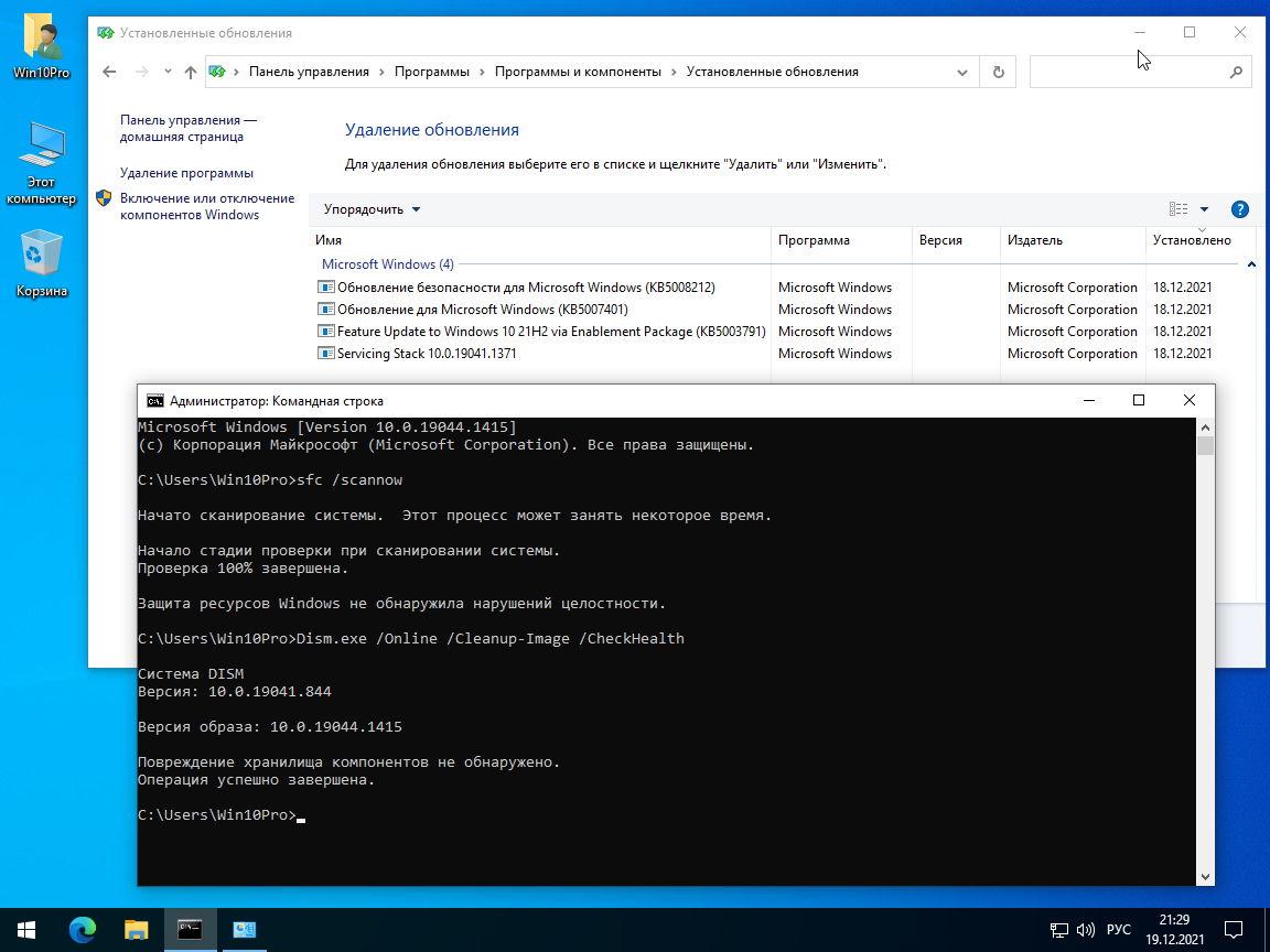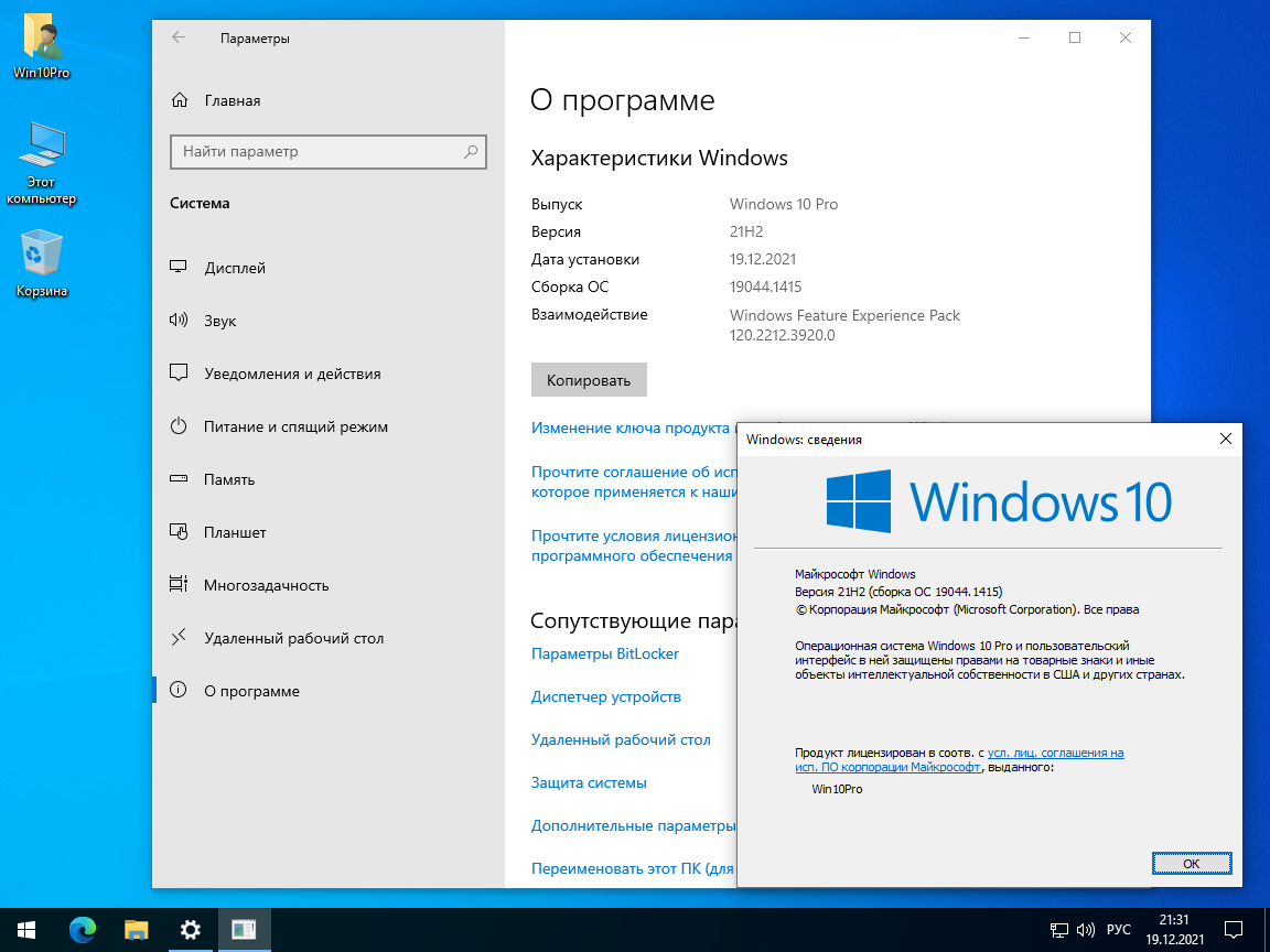 Версия: конфиденциальная Виндовс 10 Pro (на основе нового билда 19044.1415) v.21H2