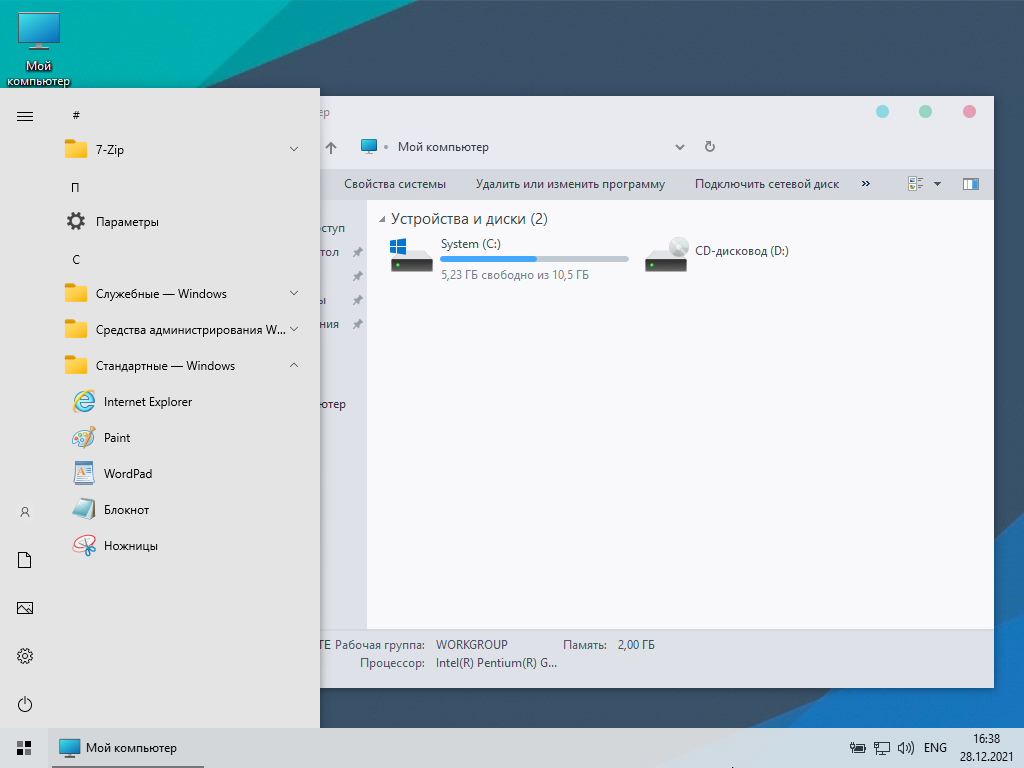 Параметры образа Windows 10 Home 21H2 Lite Игровая 2022 x64 x32:
