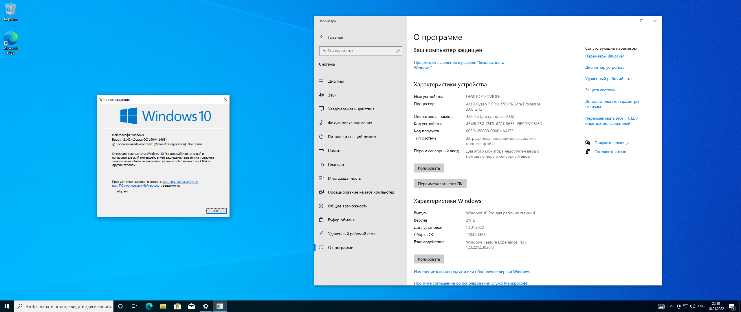 Windows 10 21H2 Оригинальные образы 2022 на русском 19044.1466