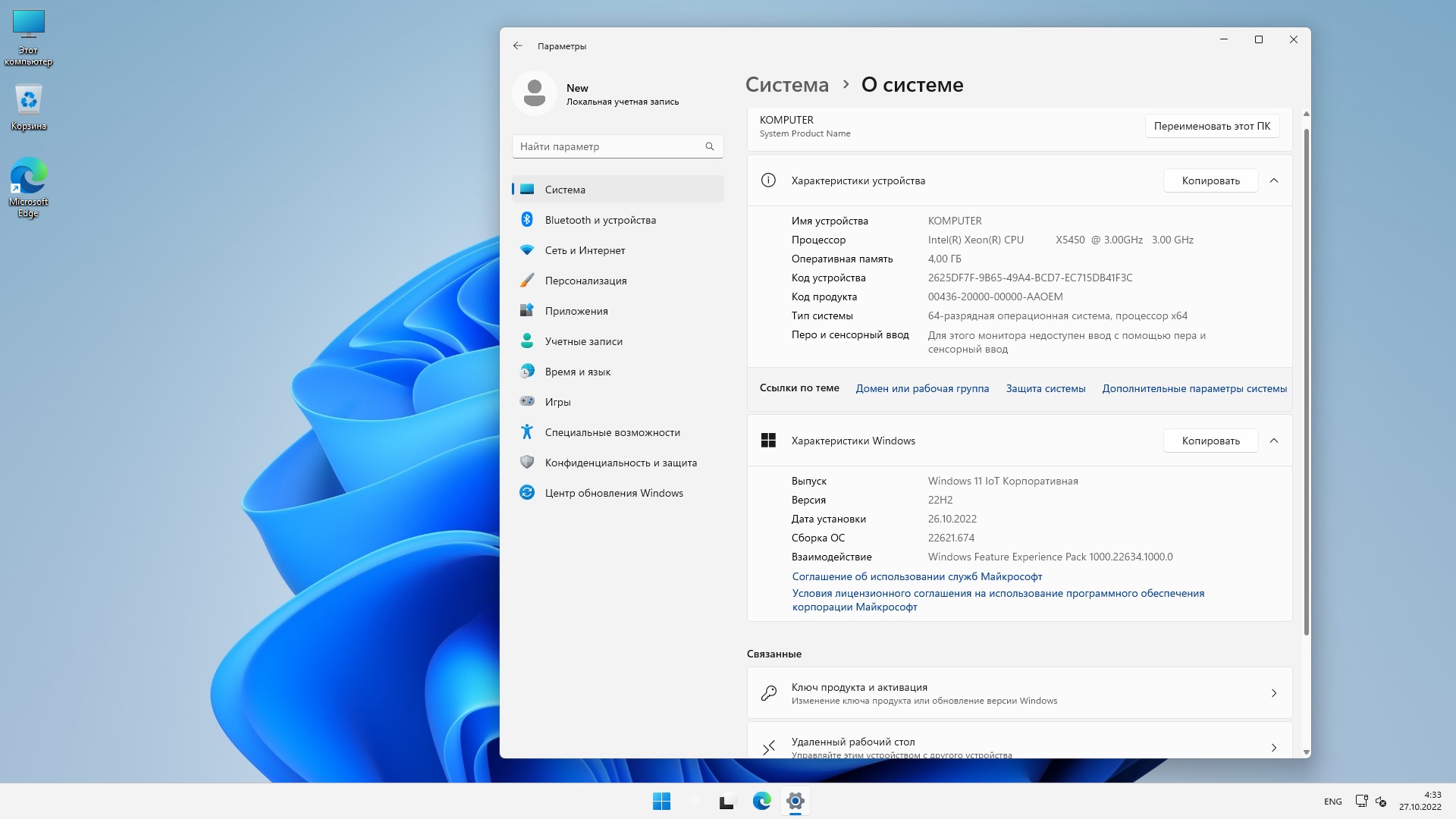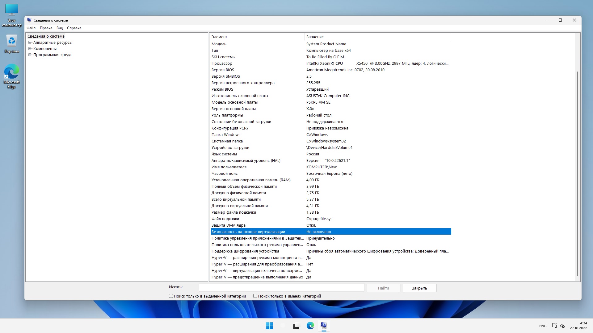 Версия: Windows 11 22H2 с отключенной изоляцией ядра (22621.674) IoT Enterprise