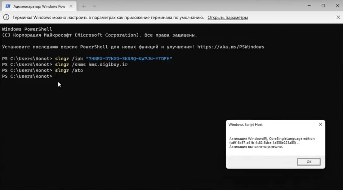 ШАГ 4. Успешно активируете Windows командой