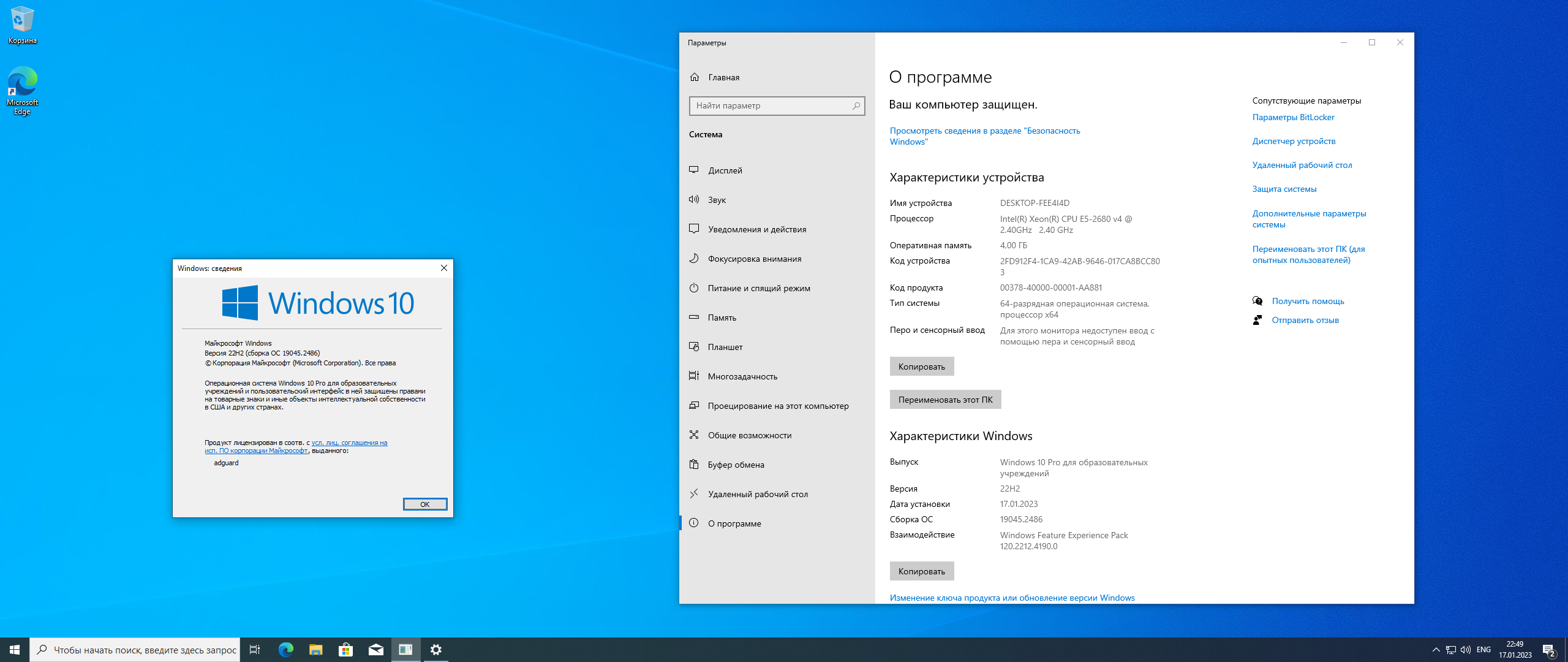 Версия: оригинальные образы Windows 10 consumer/business (22H2-19045.2486) MSDN с контролем MD5