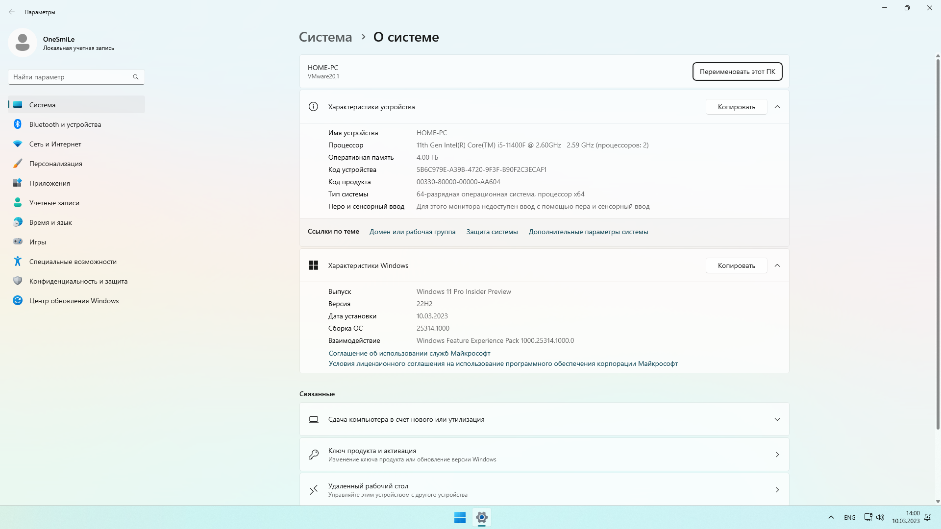Параметры образа Игровая Windows 11 22H2 by OneSmiLe 25314.1000 2023 на русском: