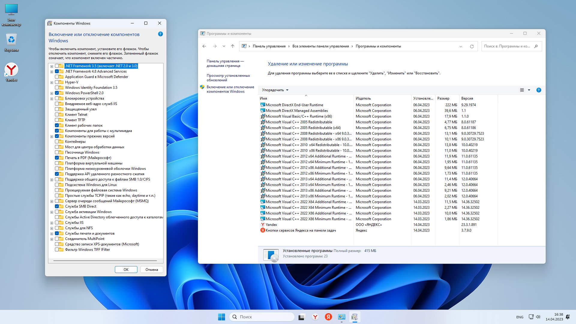 Вырезанные компоненты в Win 11 Корпоративная by Revision