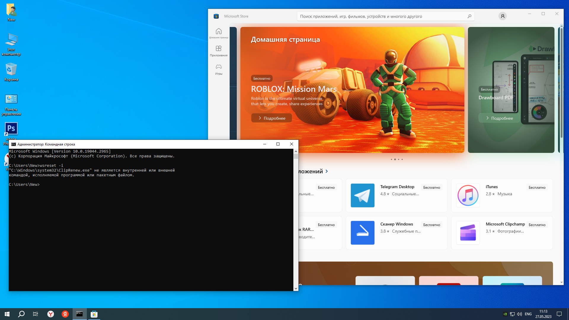 -Как добавить Магазин? – Простой командой wsreset –i (см. скрины). После этой команды (от имени Админа) появится сообщение, что команда недопустима, но Store при этом успешно установится!