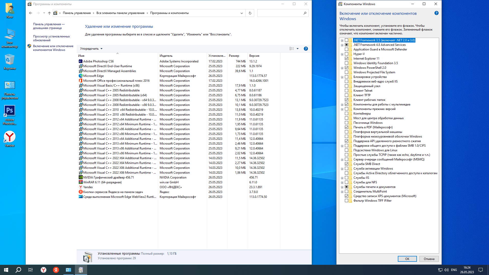 -Встроены нужные для игр и программ дополнения. Если какая-либо игра предложит добавить VC++, то это делать не нужно. Всё уже встроено (за исключением старого Framework 3.5, который вряд ли вам понадобится). Но если вдруг потребуется старая версия Framework 3.5 (для очень старых игр или программ), то добавите его без проблем в Компонентах Windows.
