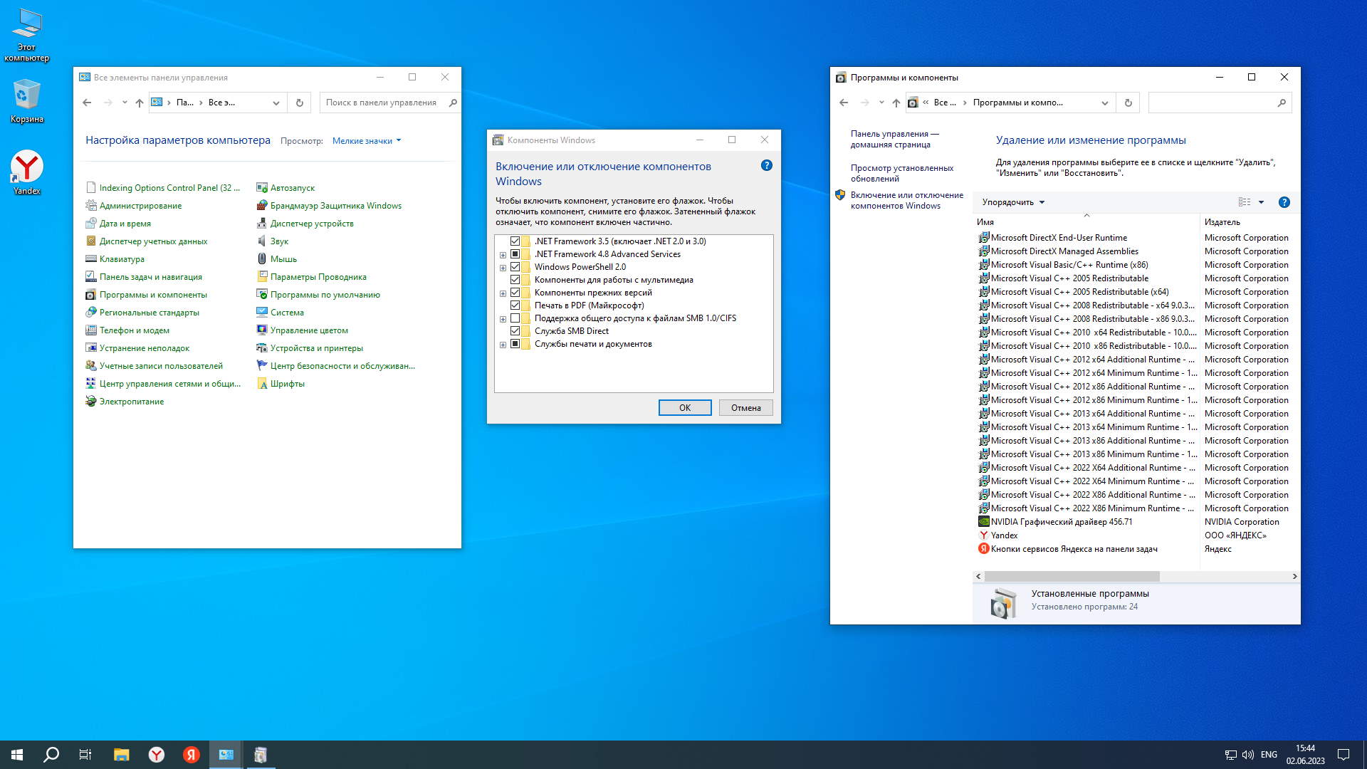 Отличная сборка Виндовс 10 реально без лишнего, подойдёт для любых целей требующих конфиденциальности и стабильности. Для ознакомления скачать Windows 10 x64 Pro Чистая базовая сборка 22H2 на русском торрент для установки через USB флешку.Сборка Windows 10 22H2 с запрещенным (и вырезанным) Windows Update. Никакие апдейты от Microsoft эта система получать не будет. Даже драйвера не будут подгружаться с Windows Update (т.к. данный сервис попросту отсутствует в системе). Но поскольку в системе не вырезались драйвера на Сеть, вы их сможете загрузить самостоятельно. Также можно воспользоваться простым и эффективным набором SamDrivers. Защитник и Смартскрин тоже вырезаны (а не только выключены). Вырезаны и плитки (включая Store), т.к. сборка для тех пользователей, кому хлам Майкрософт не нужен. Также вырезано много различных (не самых нужных) Компонентов Windows. На скрине вы можете увидеть, что из всех компонентов системы остался лишь минимальный необходимый набор. Сборка сильно урезанная (несмотря на то, что образ по размеру не очень-то и маленький). Но зато кэш WinSxS не поврежден, и защита файлов Windows также функционирует нормально. Никаких пропатченных модулей вы в этой сборке не найдете, она работает стабильно, и даже в логах событий нет ни единой критической ошибки. Аккуратно урезанная сборка Windows – для тех пользователей ПК, кто прекрасно понимают, что обновлять систему каждый месяц вовсе не обязательно. Edge вырезан тоже с корнями, отсутствует WMP, вырезан даже Internet Explorer, но зато есть новейший Яндекс-браузер. Благодаря отсутствию хлама, нагрузка системы на ваш компьютер – минимальная.
