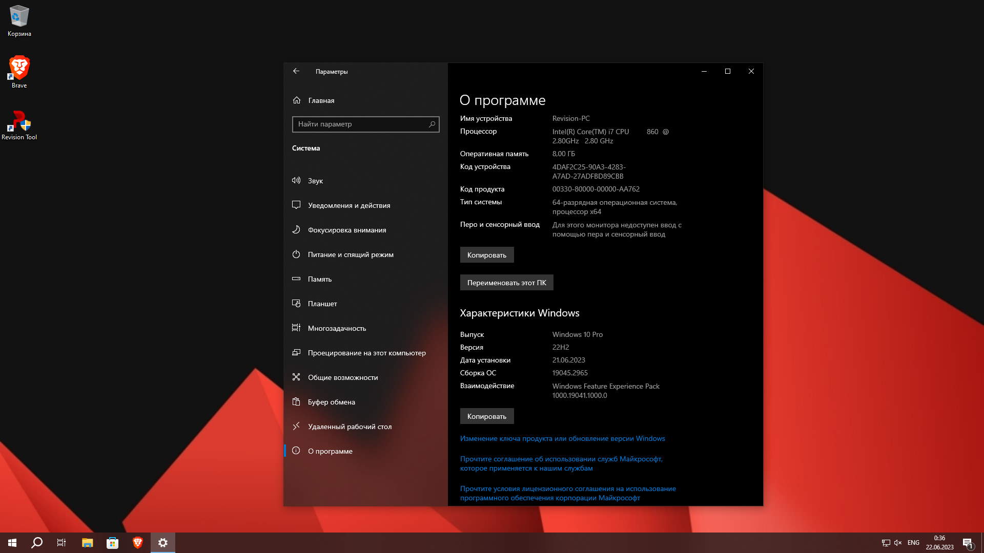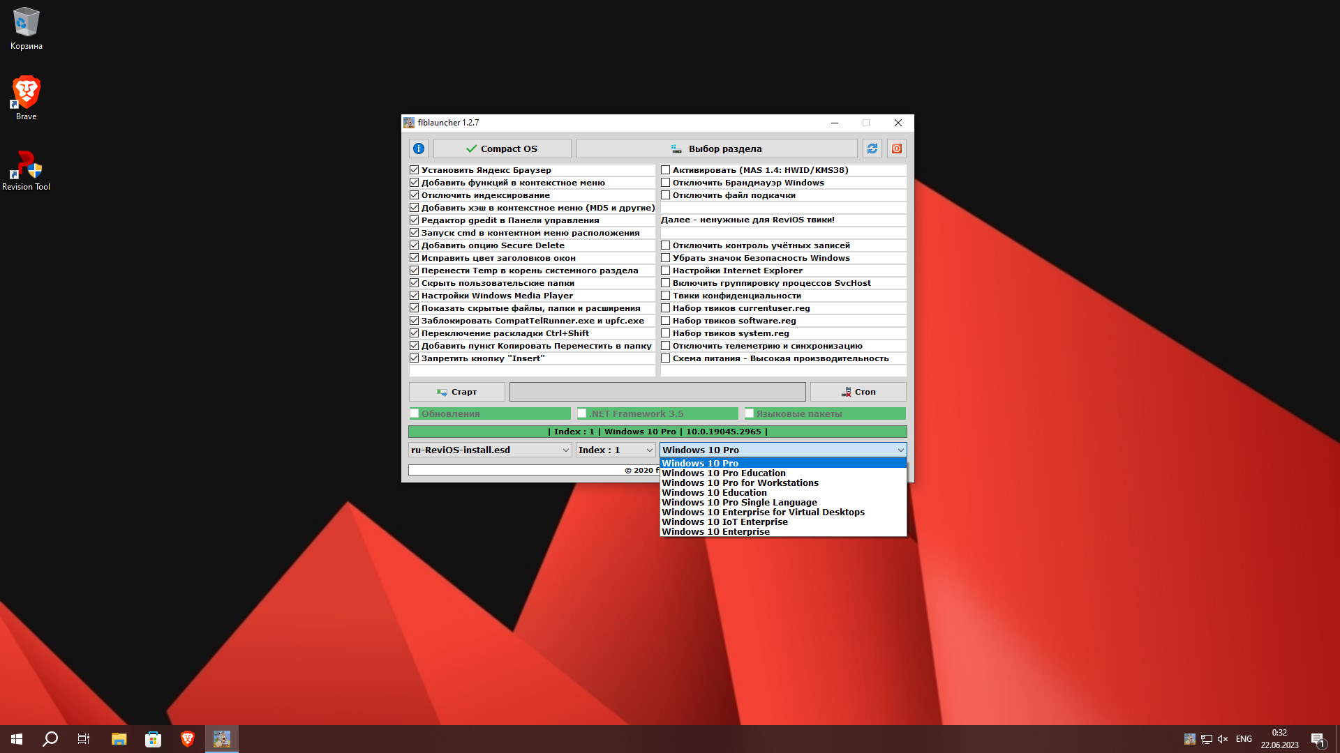 Параметры образа Windows 10 64bit Pro 22H2 ReviOS на русском с flblauncher:
