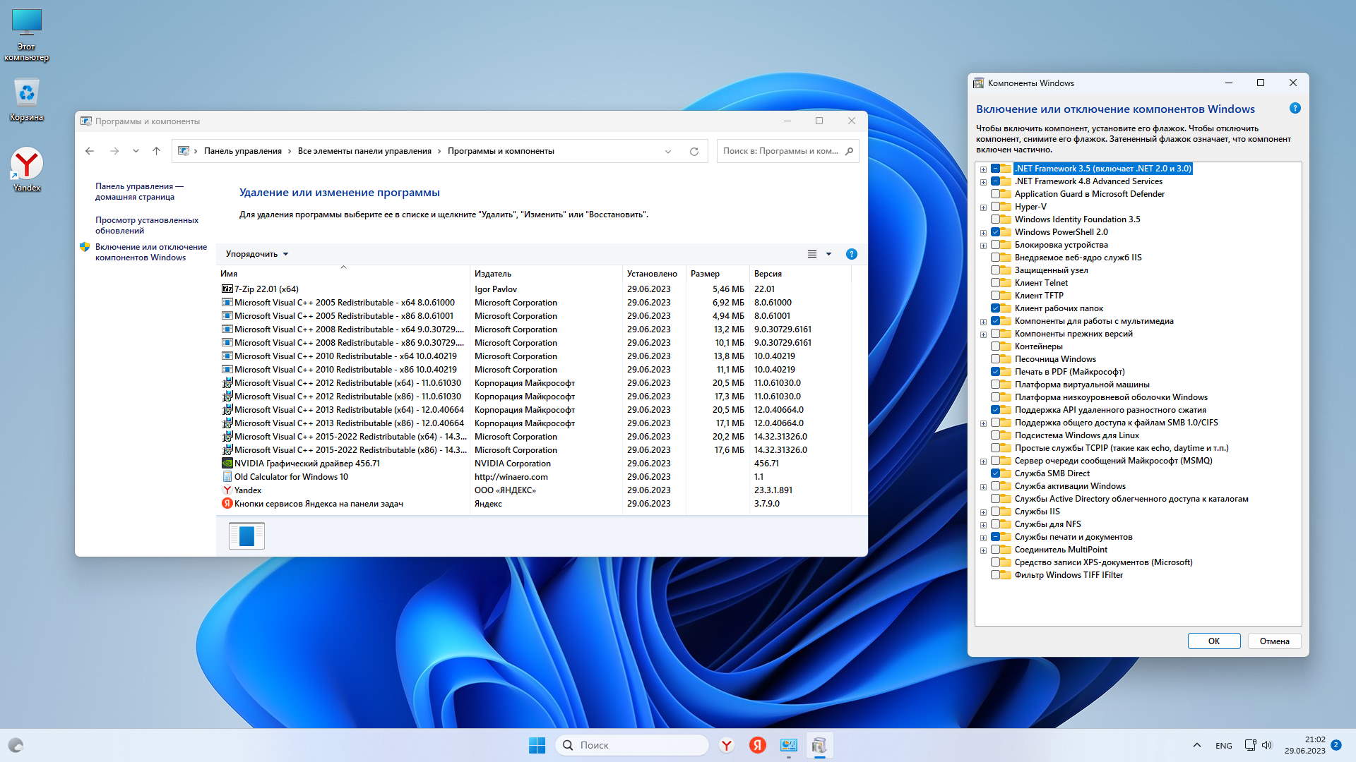 -Включен Framework 3.5, но DirectPlay (который тоже может для старых игр пригодиться) – выключен.