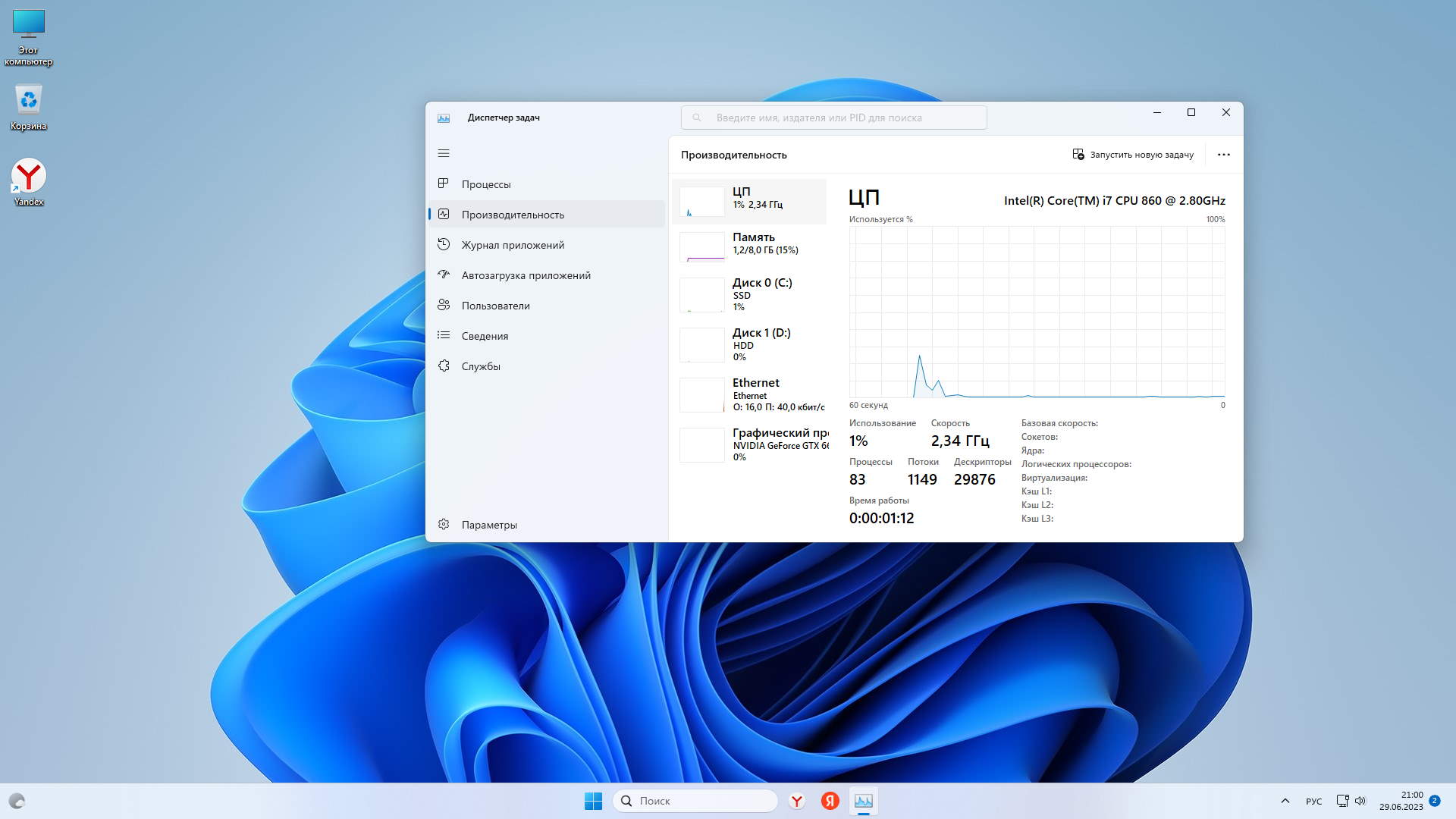 -Калькулятор (классический) вы найдете в Инструментах Windows. Немного раздражает, что нет Paint, но зато хотя бы есть Ножницы. Переключение раскладок стандартное, установка строго с локальной учеткой, диспетчер задач вас порадует отсутствием ощутимой нагрузки. В то же время нельзя сказать, что сборка работает сверхэкономично, всё-таки 1.2 ГБ RAM занятой памяти на старте – это сравнительно немало. Но при этом сама сборка легко работает, и это самое главное (для большинства пользователей).