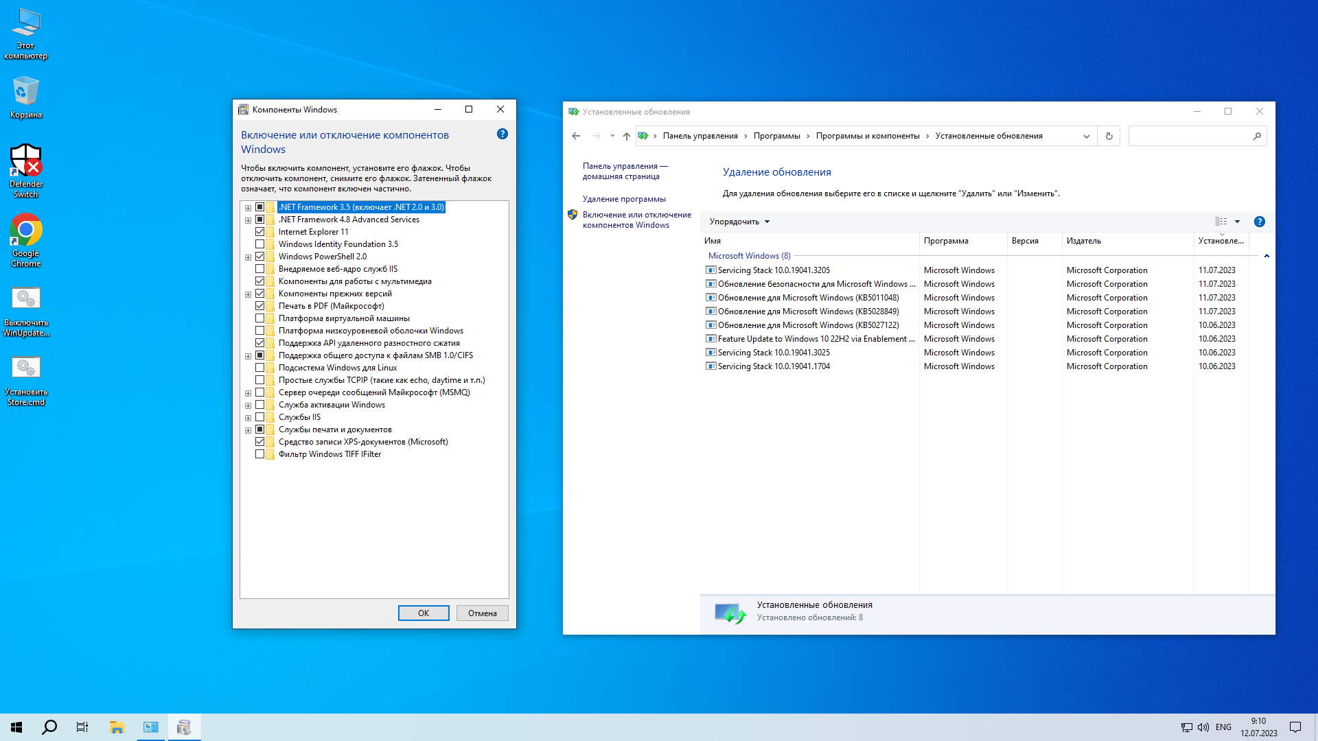 -В Lite-версии: встроено всё то, что встроено в Full и Medium, кроме этого добавлен Defender-Switch. После включения и обновления Защитника у вас вряд ли получится выключить его обратно при помощи Defender-Switch. Поэтому используйте этот переключатель, если планируете использовать Защитник далее постоянно. Также на рабочем столе – скрипт установки Store (либо командой wsreset -i).