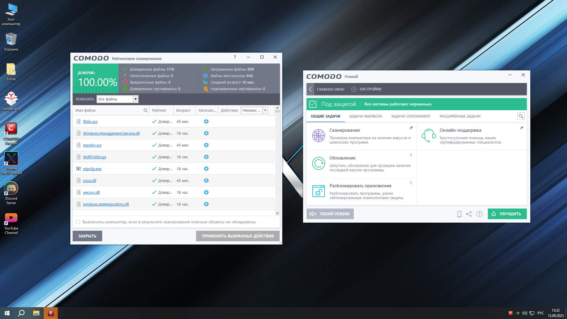 -Защитник выключен (как и прочие средства защиты – Смартскрин, UAC).