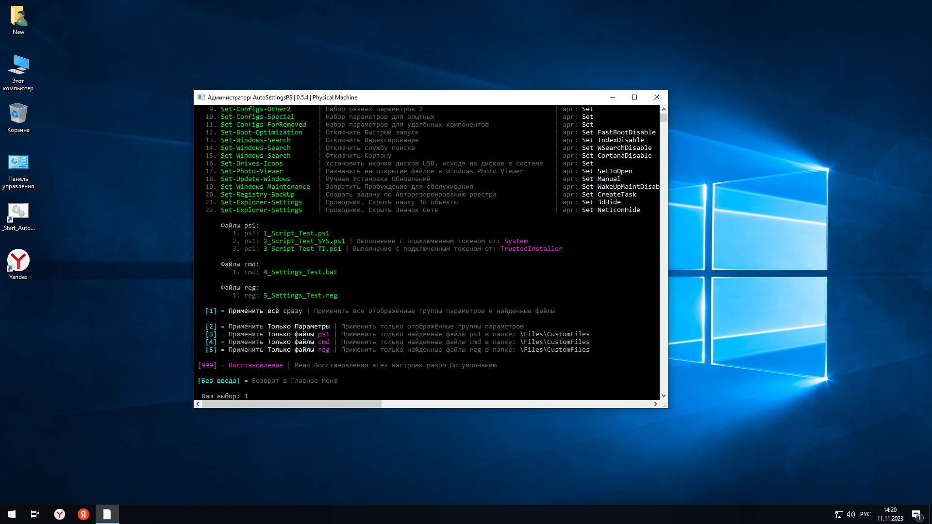 Осуществите финальную настройку самостоятельно – используя AutoSettings PS. Но сначала пусть система установит драйвера и перезагрузится. После этого запустить как Администратор AutoSettings PS, выберите 0.