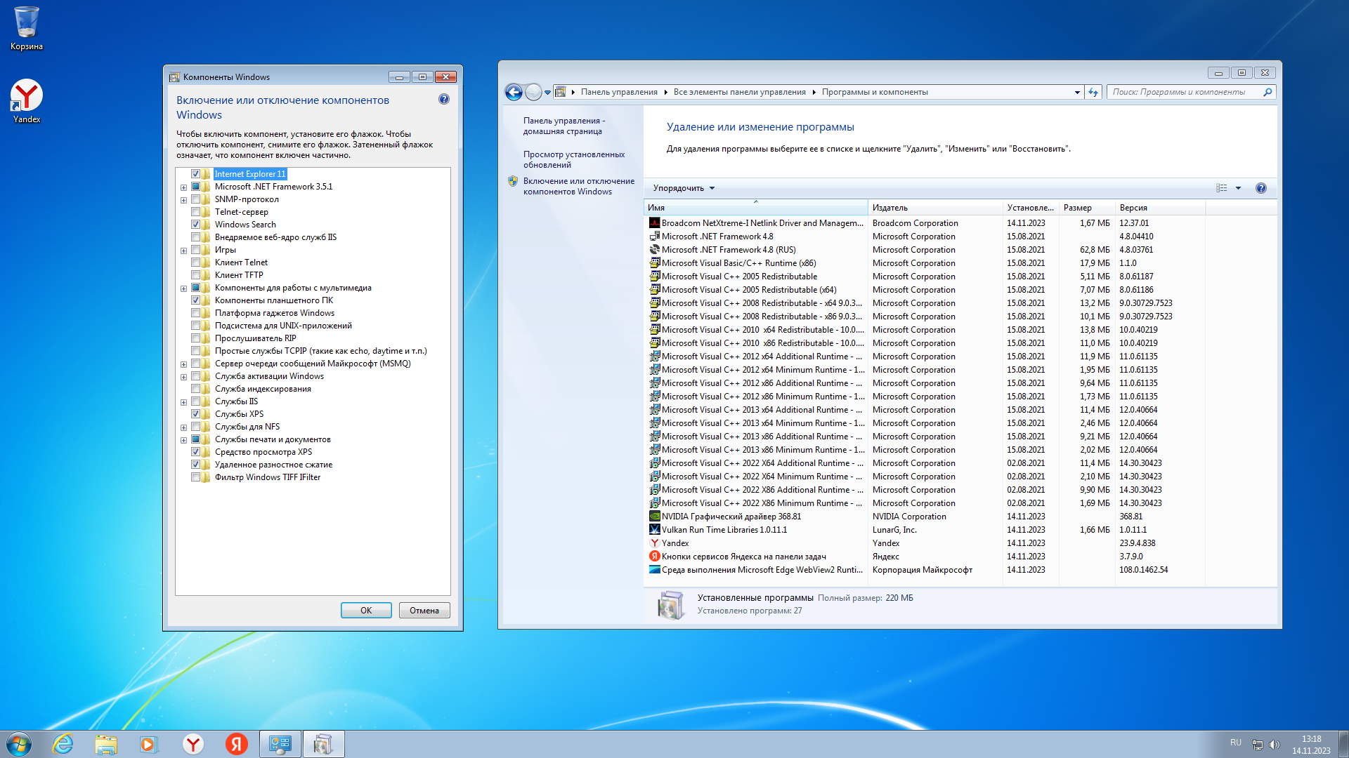 -Встроен Яндекс.Браузер (в стандартной «семерке» - только старый Internet Explorer, которым обычно не пользуются). Яндекс.Браузер полностью автоматически инсталлируется.