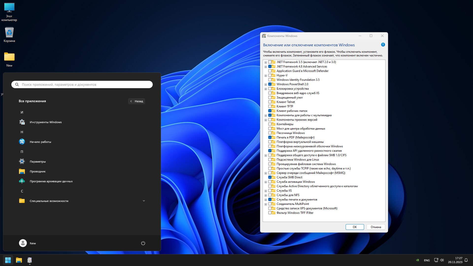 Параметры образа Windows 11 Pro надежная сборка 23H2 без Edge и плиток на русском: