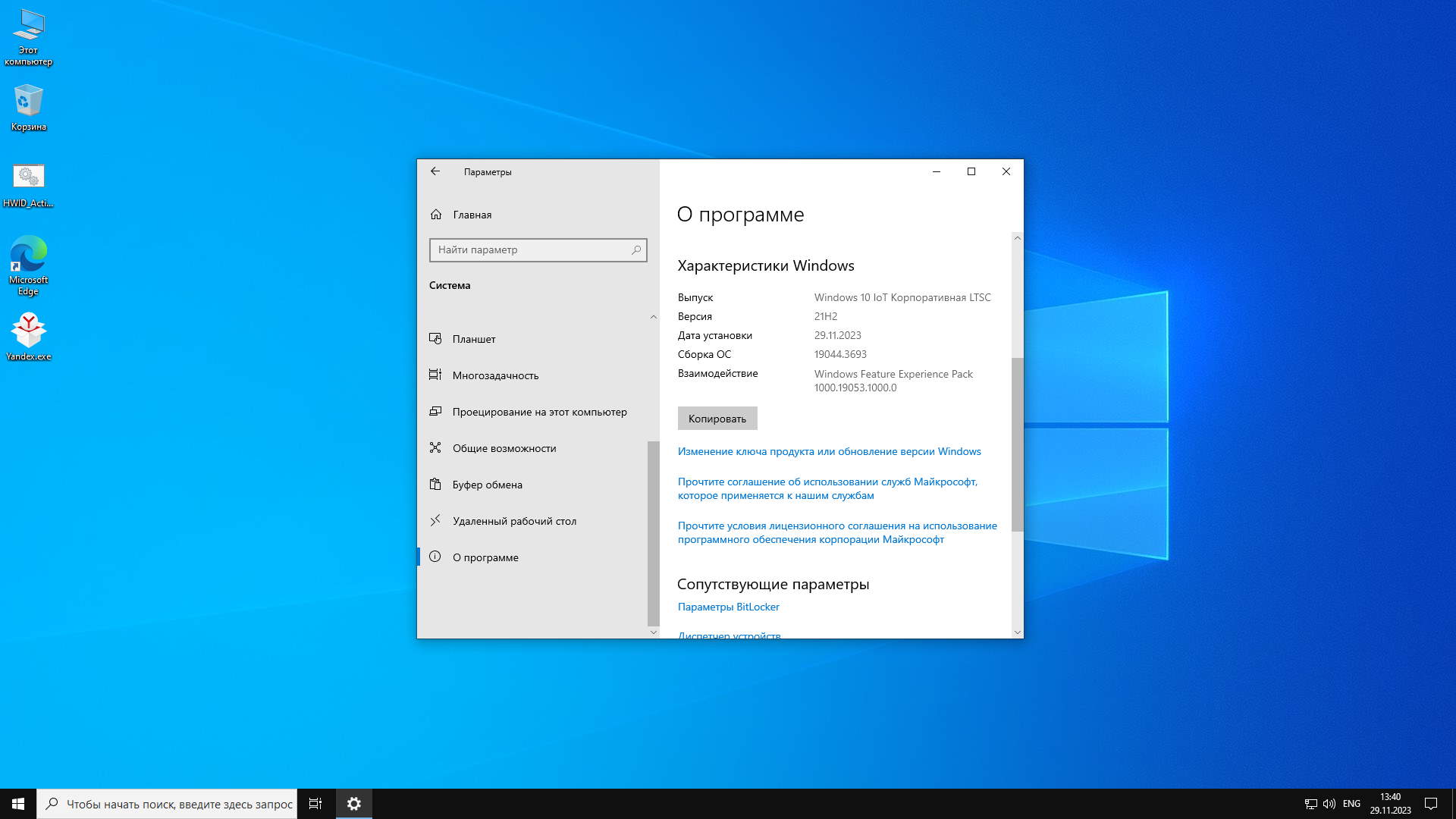 Версия: ускоренная Windows 10 IoT LTSC (19044.3693-21H2) для долгосрочного использования